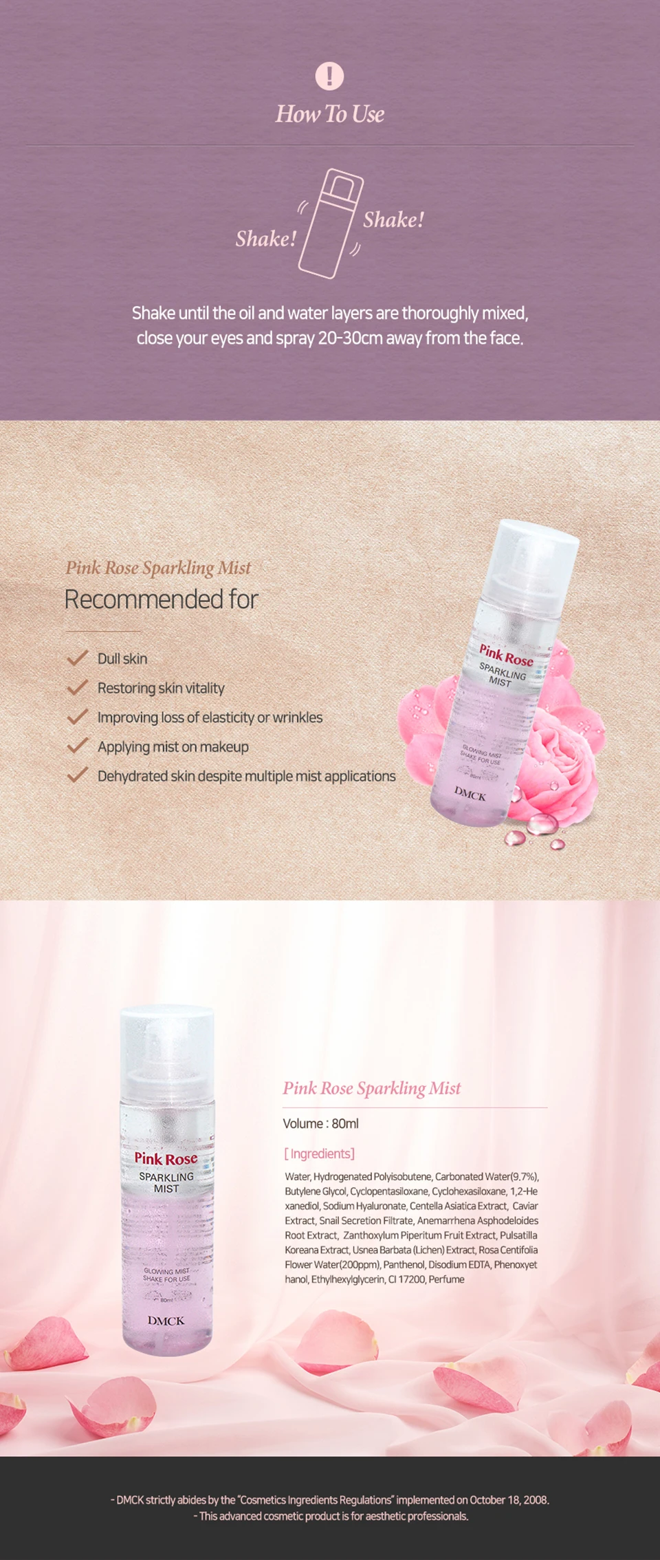 DMCK официальный [Корея № 1 туман для лица]-розовая роза сверкающий туман
