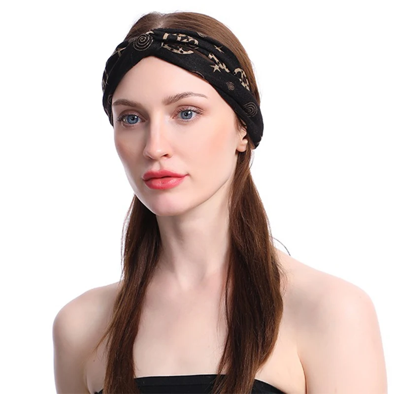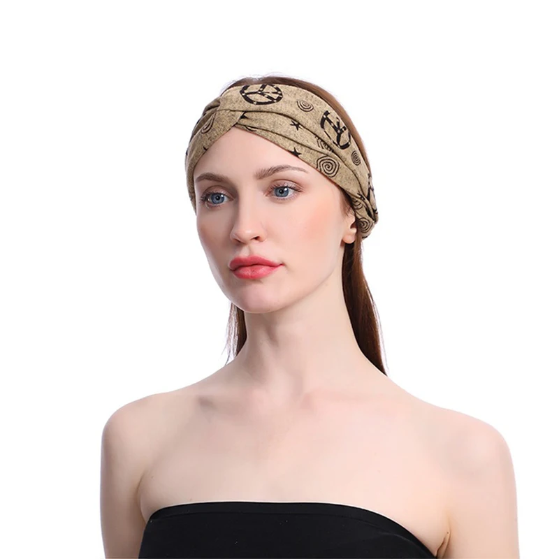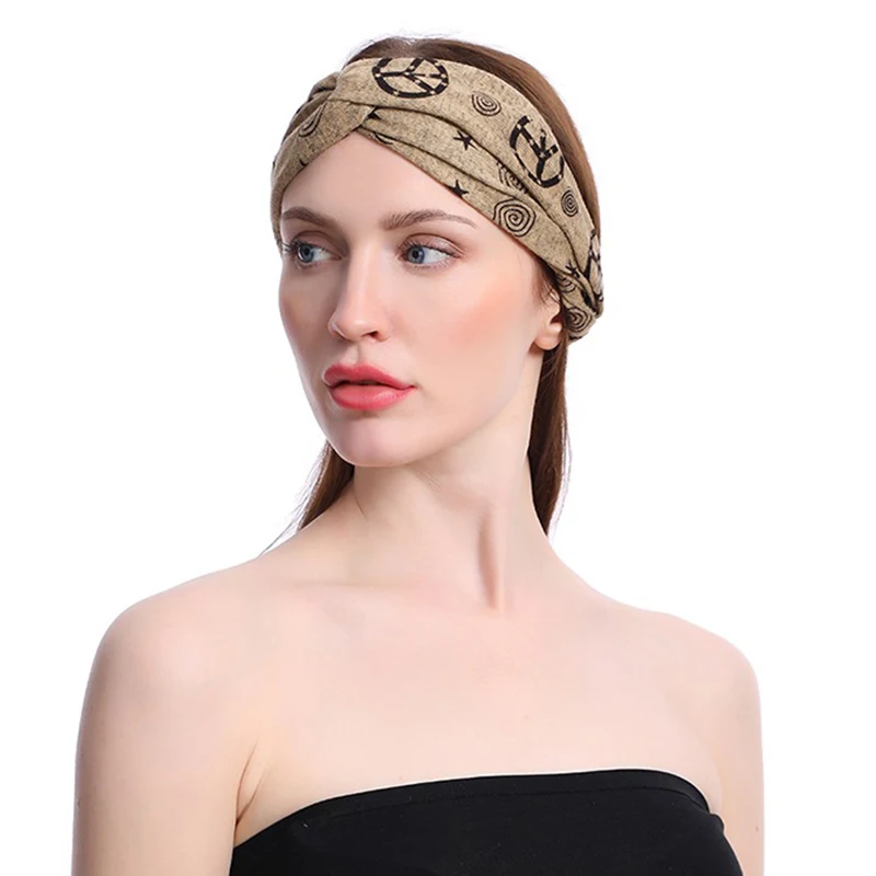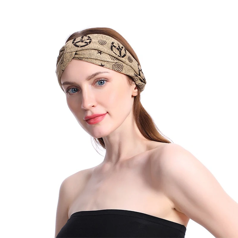 Хиппи печатные Йога повязки для волос для женщин девушек мир и Любовь Ретро Винтаж Крест тюрбан банданы спортивные эластичные повязки для волос