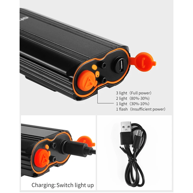 Аккумулятор: 2x18650, 4400 мАч; Режимы: низкий-средний-высокий, стробоскоп (удерживайте около 2 ")