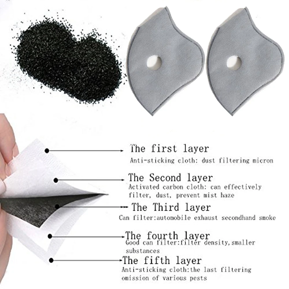 10 шт. активированный уголь + воздухопроницаемое волокно PM2.5 сажевая лицевая маска фильтр Пылезащитная велосипедная маска очиститель воздуха пылезащитный инструмент