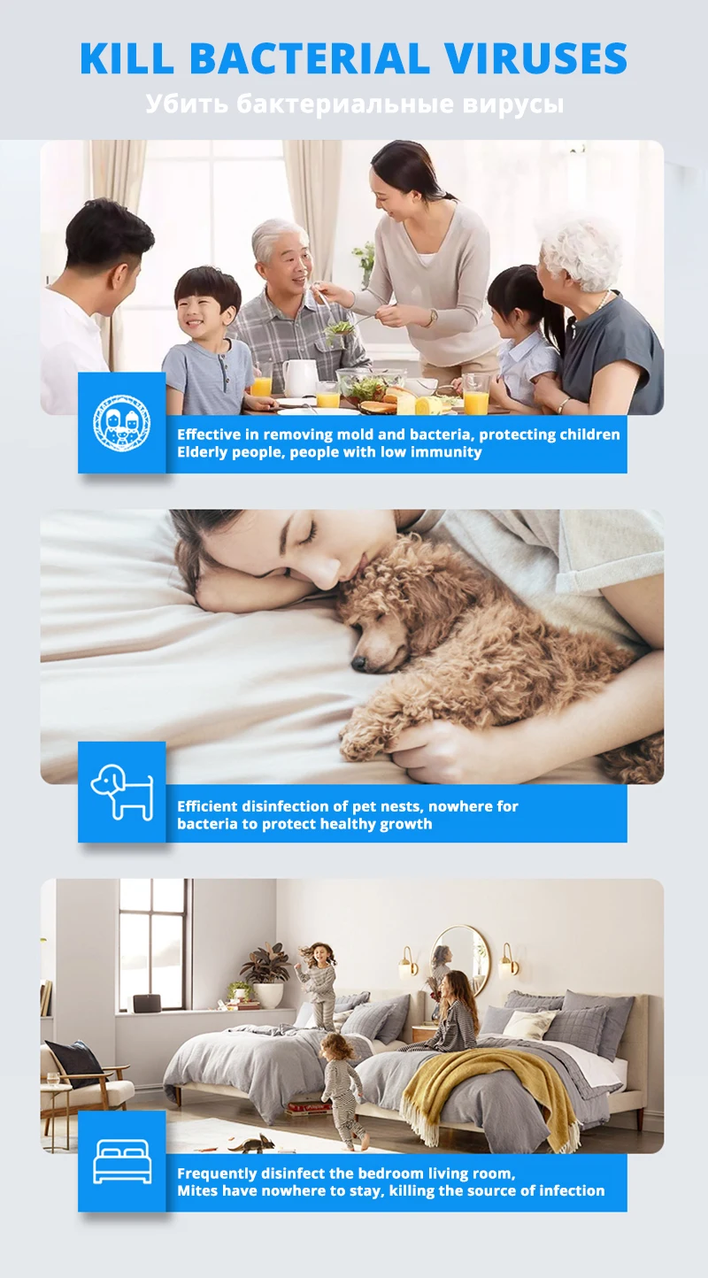 Эффективный УФ-лампа УФ-свет с озоном может уничтожать бактерии, аллергены, плесень более эффективно. И он может очищать воздух и удалять запах на 360 градусов, обеспечивая более здоровую окружающую среду для вашей семьи. (Примечание: озон содержит запах и должен проветриваться в течение 45 минут после дезинфекции.) Превосходное качество Ламповая трубка изготовлена из кварцевого стекла высокой чистоты. Он не легко подвержен воздействию ультрафиолета и является более прочным. Корпус изготовлен из АБС-огнестойкого материала, который не легко протекает, обладает хорошей теплоотдачей и имеет срок службы до 8000 часов. Легко моется При очистке УФ-лампы Отрежьте питание, используйте чистую, мягкую ткань или спиртовую ткань и протрите его. Широкое применение Эта дезинфекционная лампа помогает создать здоровую и чистую окружающую среду. Подходит для многих случаев небольшого пространства, таких как автомобиль, спальня, кухня, обувной шкаф, стиральная комната, детская комната, домик для домашних животных, туалет, гораздо больше места, которое вы хотите очистить.