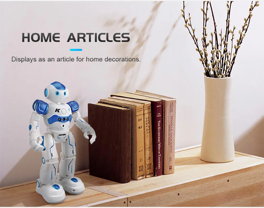 JJRC R2 CADY WIDA / WINI-это Интеллектуальный робот RC, который способен создавать много веселья для ваших маленьких детей. Когда ваша рука движется, датчик жестов обнаружит такое движение и сделает робота продвинутым, отступлением, поворотом влево/вправо. Интересно, что, поскольку он патрулирует вперед и встречает препятствия на своем пути, он будет двигаться назад, а затем поворачиваться влево/вправо. Чтобы создать больше удовольствия, вы можете программировать серию движений и видеть, как робот выполняет их ритмично с динамической музыкой.