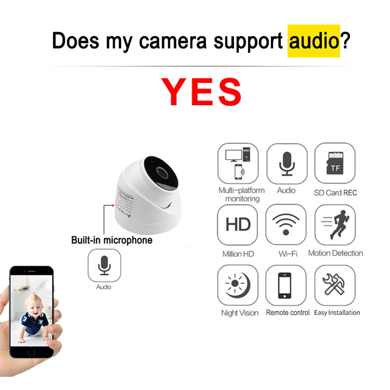 Вы можете подключить беспроводную ip-камеру к видео и звуку из любой точки мира через мобильное приложение.