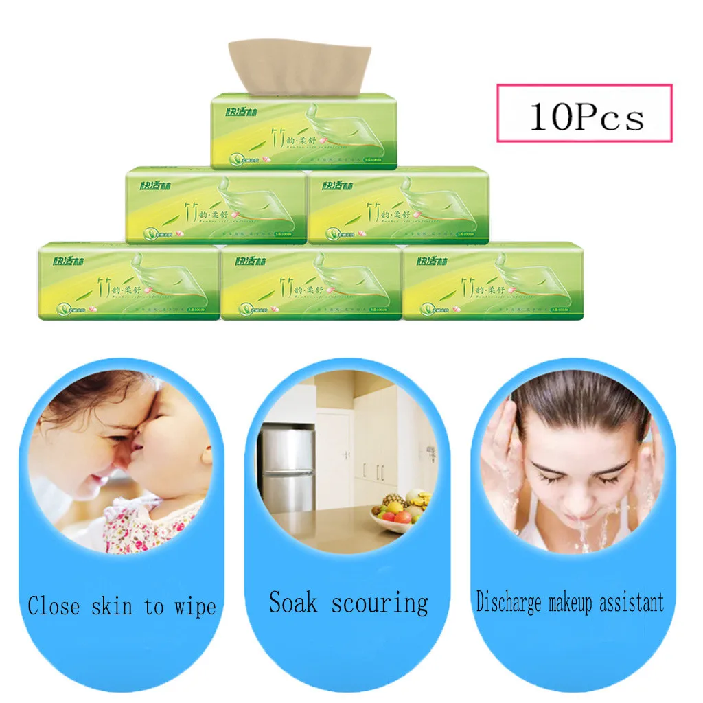10 шт., три слоя туалетной бумаги, натуральная бамбуковая целлюлоза, лицевая бумага, бытовые бумажные салфетки, чистая переработанная ткань