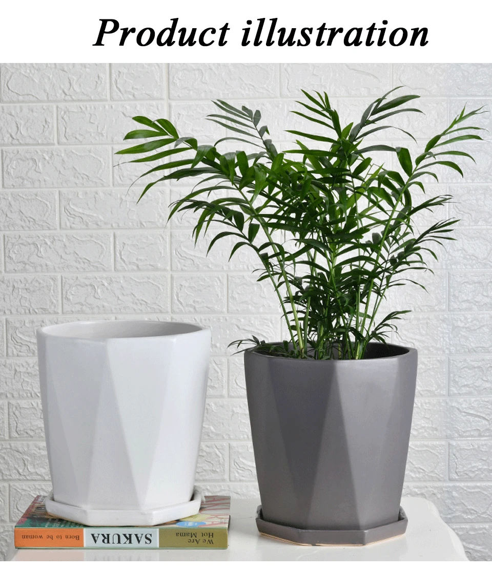 ItemName: современный минималистский стиль, Матовый керамический цветочный горшок, креативная индивидуальность, большой напольный цветочный горшок с лотком, украшения для сада