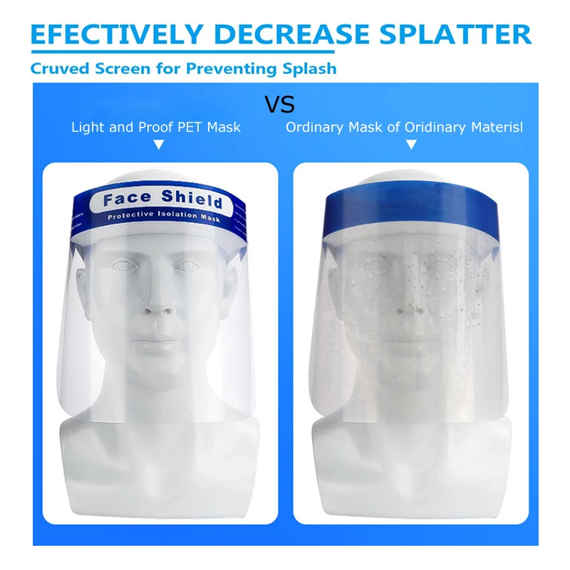 Защитный щит для лица для мужчин-покрытие от верхней части головы до подбородка, полная защита лица от брызг и брызг. Высококачественный защитный лицевой щит изготовлен из вторичного материала для животных с хорошей прозрачностью, водонепроницаемостью, защитой от тумана, защищает от брызг при 180 градусах. Защитная маска для лица имеет отличную защиту. Эластичная Повязка на голову с пеноэластичной лентой для защиты лица может быть скорректирована в соответствии с вашими потребностями. Фиксирующая devic удерживает защитную маску для лица вдали от лица, пенопласт с подкладкой для обеспечения дополнительного комфорта и безопасности. Удобный и многоразовый-оптически чистый, без искажений, без обмотки вокруг лица. Прозрачный защитный лицевой щит для максимальной видимости. Широко используется-защитная маска для лица, удобная в носке, быстро и легко надевается. Защитный щит для лица хорош как для повседневного использования, так и для всех видов активного отдыха. Этот защитный щит для лица изготовлен из ПЭТ-материала, состоит из защитного покрытия, пенопласта и фиксирующего устройства, обеспечивает отличную защиту. Особенности: Защита всего лица от капель, слюны, брызг, масла, пыли. Хорошая эластичность, подходит для большинства людей. Легкий вес, высокая прозрачность Рекомендуется использовать с масками. Пожалуйста, вдали от огня Характеристики: Материал: ПЭТ + губка Цвет: прозрачный Размер изделия: 32*22 см/12,6 * 8.66in Упаковочный лист: 1 * Защитный лицевой щит