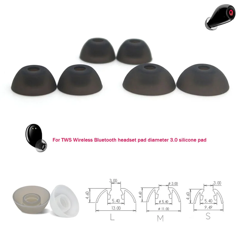 6 шт. Мягкие силиконовые сменные амбушюры 3,0 мм для TWS True беспроводная Bluetooth гарнитура силиконовый чехол прозрачный черный