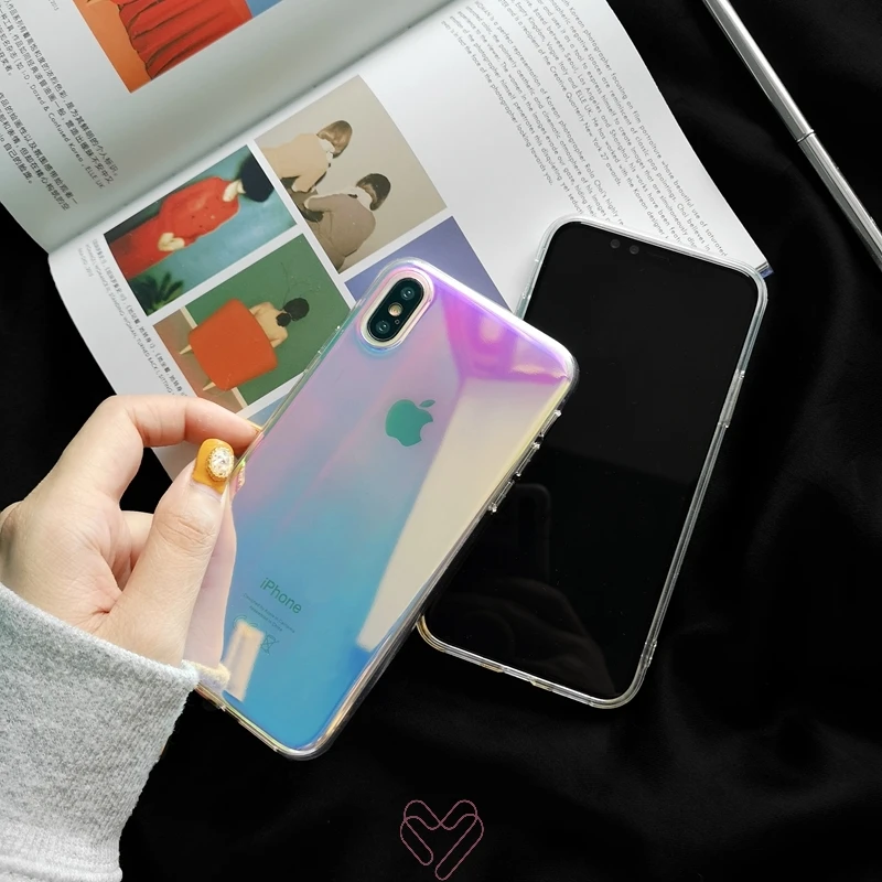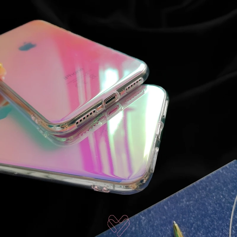 Для iPhone 6 6s 7 8 Plus 11 Pro X XS XR Max градиент цвета радуги голографическое зеркало прозрачный мягкий Силиконовый ТПУ чехол