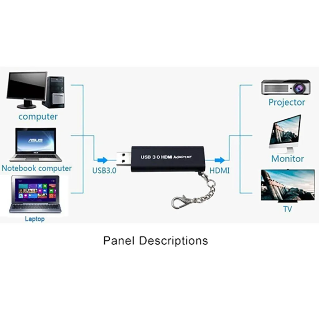 Этот адаптер USB-HDMI может Подключите компьютер через usb-интерфейс к HDTV, монитору или проектору с Интерфейс HDMI. Он доставит аудио-видео источники высокой четкости в Компьютера к вашему HDTV или монитору. Совместим только с Windows 7/8/10/XP. Сделать Не поддерживает MAC/Linux /Vista/Chrome/Firestick
