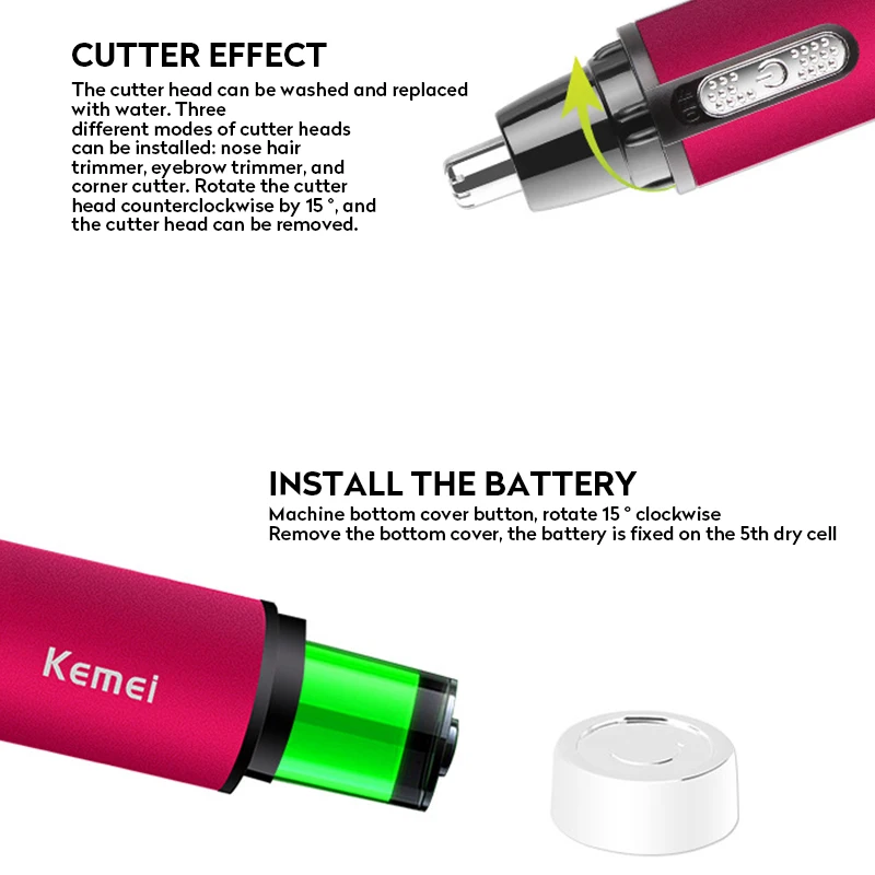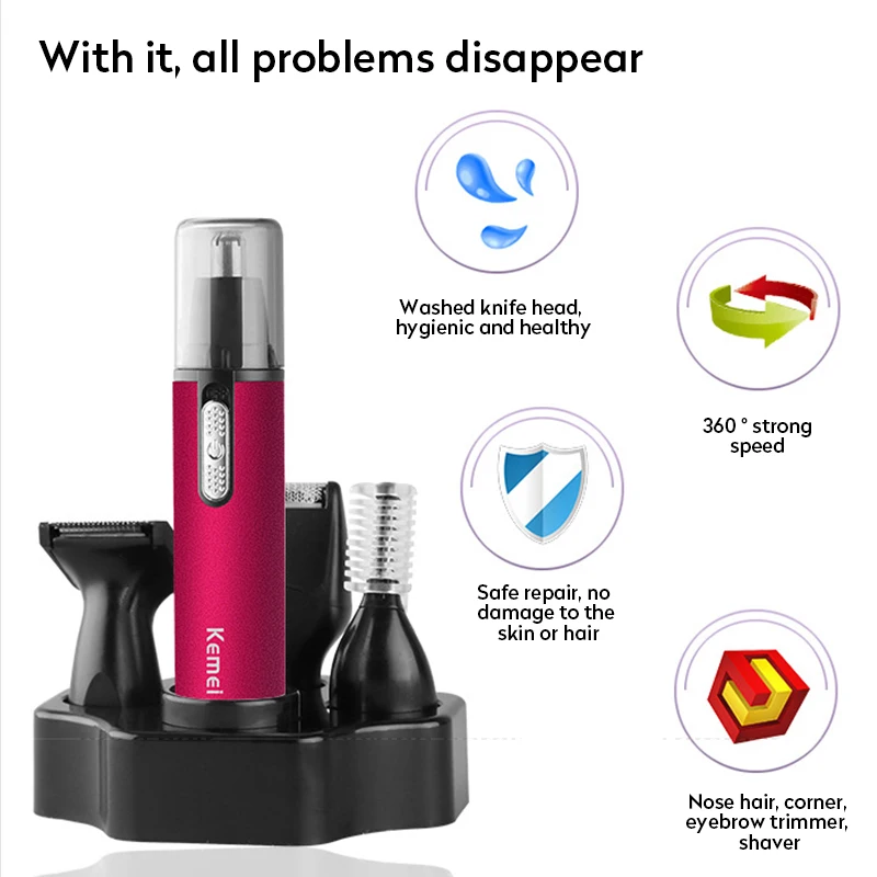Одна машина многоцелевой, набор триммеров используется для волос в носу, ушных волос, бровей, бакенбардов и обрезки бороды. Острые лезвия из нержавеющей стали и высокоскоростной Вращательный двигатель, безопасная и эффективная резка, не повреждая кожу, и не застревает волос. 4 лезвия для триммера моющиеся и сменные, вы можете удалить и краску лезвия после использования, здоровые и гигиенические. Шнур и беспроводное двойное использование, Встроенный перезаряжаемый аккумулятор, после 12 часов полной зарядки, он может использоваться непрерывно в течение 60 минут, экономичная и экологическая защита. Компактный и портативный, одна кнопка работы, идеально подходит для дома или путешествий.