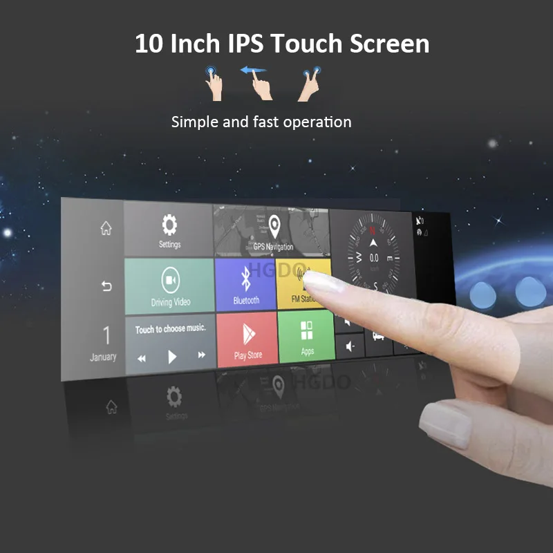 10-дюймовый полный сенсорный экран, сверхширокоугольный потоковый медиа заднего вида