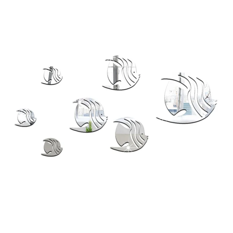 Акриловое пузырчатое зеркало в форме рыбы, наклейка на стену, клейкое серебряное зеркало для морской рыбы