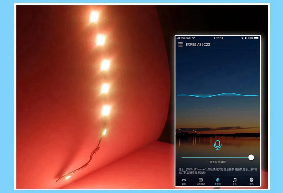 Приложение будет считывать музыкальные файлы в вашем телефоне, и светодиодный светильник изменит цвет или мигнет с мелодией.