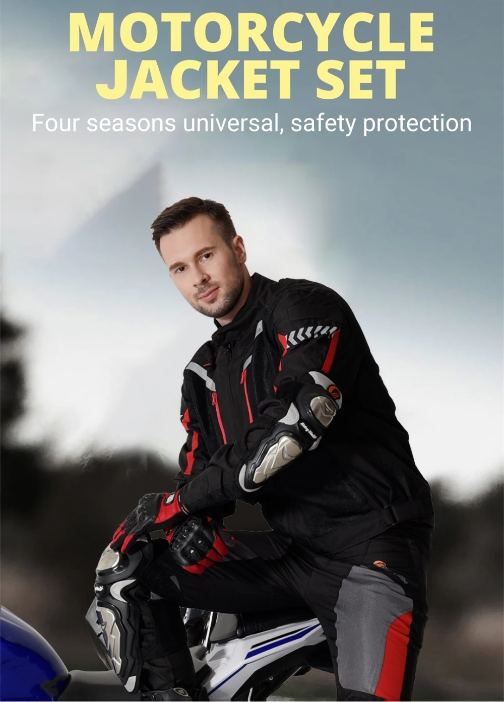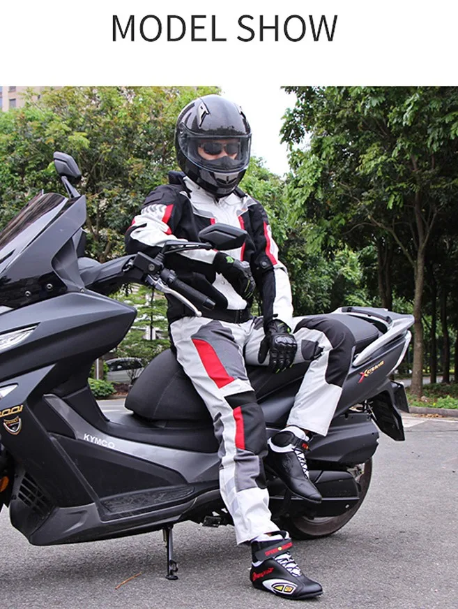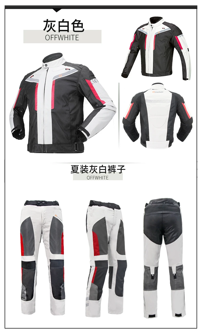 1. Со съемной тепловой подкладкой, сохраняет тепло в холодную погоду и подходит для любого сезона. 2. Включает 9 съемных протекторов, плеч, локтей, спины, колена и бедер, защищающих весь корпус. 3. Водонепроницаемая подкладка из ТПУ, работает при сильном дожде. 4. Видимость: светоотражающий логотип 5. Регулировка: молния и пуговица на манжетах, липучка на талии, кнопка на воротнике. Внешний корпус: taslon 500D высокой плотности Нераствор: съемный тепловой вкладыш Водонепроницаемость: Водонепроницаемая подкладка из ТПУ Сезон: весна, лето, осень и зима Цвет: белый, серый Подкладка: 100% полиэстер, отражающая ткань, таслон, полиэфирная сетка