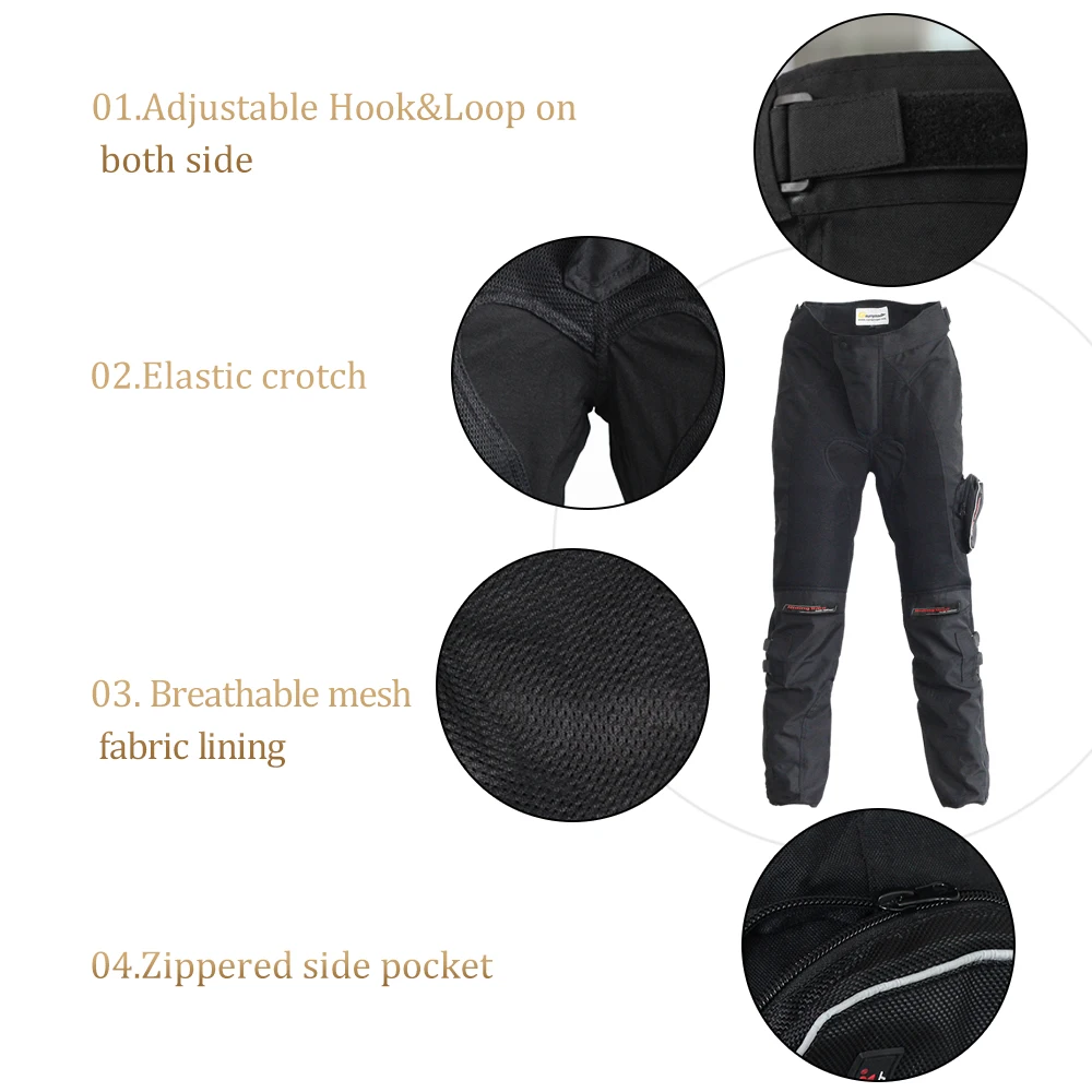 1. Сетчатая ткань из полиэстера с внешним покрытием обеспечивает воздухопроницаемость и комфорт летом. 2. Подкладка из нейлоновой сетки, дышащая, без пота. 3. 5 защитных принадлежностей обеспечивают безопасность во время езды, съемное снаряжение, удобно для повседневного ношения. 4. Толстая Наплечная накладка, налокотник и Задняя накладка, хорошая защита для вашего тела. 5. Застежка-липучка на манжетах, Подоле, талии и икры, удобно регулировать. 6. Светоотражающая полоса спереди и сзади, высокая видимость. 7. Внешний карман на молнии на груди и сбоку. 8. Эластичная промежность позволяет свободно двигаться. 9. Ножка на молнии с кнопкой, легко носить и снимать.