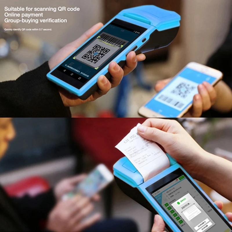 Ручной Pos Компьютер 5,5 дюймов Нажмите 3G Wifi Bluetooth Android Pda Мобильный платежный терминал с термопринтером (штепсельная Вилка европейского стандарта)
