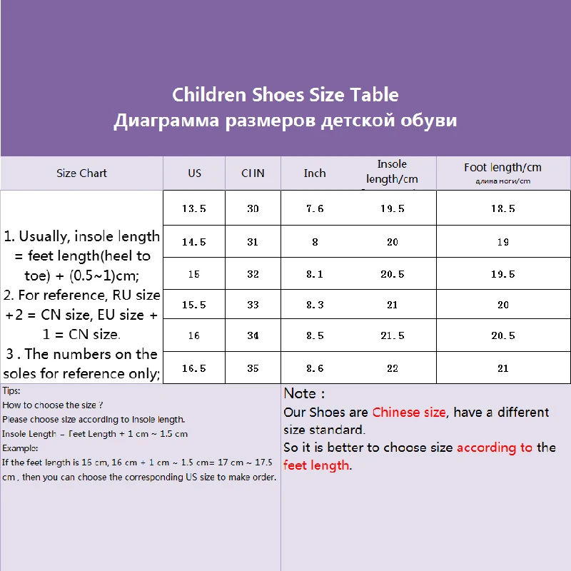 Примечание: при выборе размера, пожалуйста, проверьте нашу таблицу размеров, потому что Таблица размеров не является стандартной. Поэтому, пожалуйста, выберите размер в соответствии с «длиной стопы». Найдите нужную длину стопы, затем найдите соответствующий американский размер или размер для заказа.