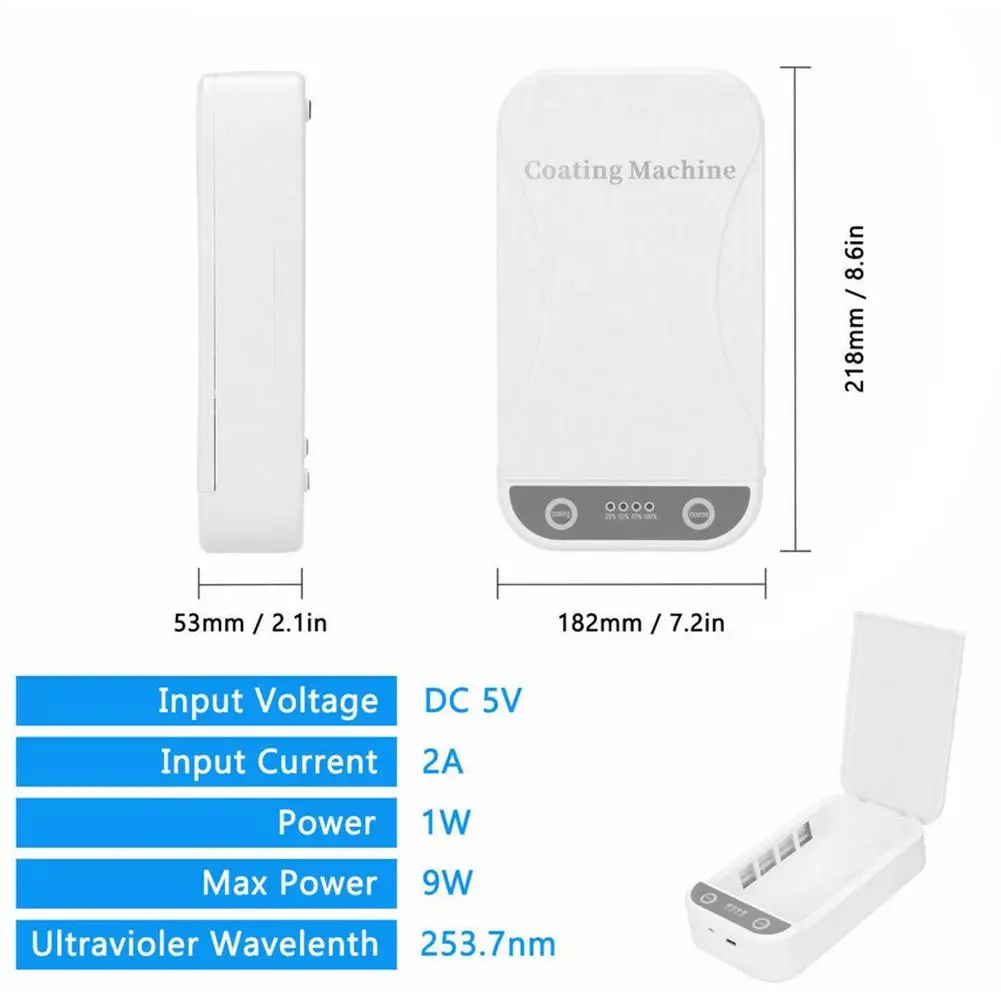 Ультрафиолетовые очистители телефонов не используют жидкости, тепло или химикаты, поэтому вы можете безопасно очистить любые из них! Светильник можно очистить и спрятать в зазорах, где салфетки нельзя очистить.Полная совместимость-очиститель подходит для всех типов мобильных телефонов до 6,5 дюймов. Ювелирные изделия, часы, кредитные карты и ключи. Вы также можете заряжать телефон с помощью USB во время очистки.Ароматерапия-нанесите необходимое масло на вход для ароматерапии, нажмите переключатель для ароматерапии и начните установку ароматических увлажнителей для вашего устройства. После завершения ароматерапии он автоматически прекратится через несколько минут, и ваше устройство хорошо пахнет.Простота использования, нажмите переключатель очистки, чтобы начать очистку. По завершении очистки машина автоматически остановится.Этот очиститель Мобильный телефон питается от портативного настольного зарядного устройства USB. Будь то в дороге или в дороге, вы можете использовать свой чехол для телефона для очистки телефона.Спецификация:Название: очиститель UV мобильный телефонНоминальное напряжение: 5 В постоянного токаВходной ток: 1-2 АУФ-мощность: 2x1 ВтМаксимальная рабочая мощность: 9 ВтСовместимость: мобильные телефоны до 6,5 дюймов.Материал: пластиковые электронные деталиБелый цветОсобенности: помимо мобильных телефонов, вы также можете чистить зубные щетки, маски, дамы, детское нижнее белье, ювелирные изделия, инструменты для макияжа, часы, монеты и многое другое!Упаковочный лист:1 * УФ мобильный очиститель1 USB-кабель для зарядки1 * Руководство