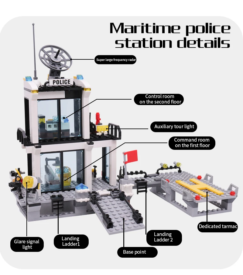 Содержание упаковки: 1 Набор строительных блоков городской полиции и подробные инструкции