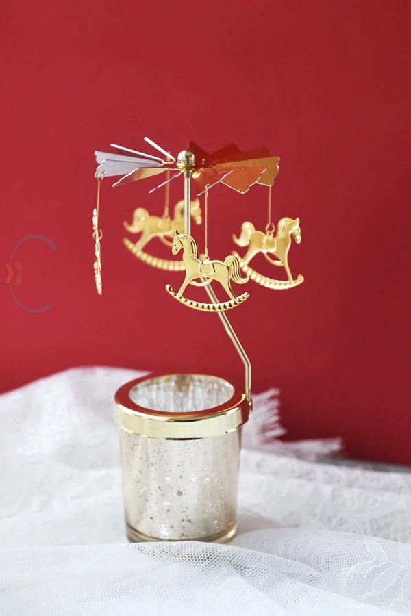 80 винтажный вращающийся Золотой подсвечник с автоматическим нагревом вращающаяся лошадь лампа звезда небо подсвечник