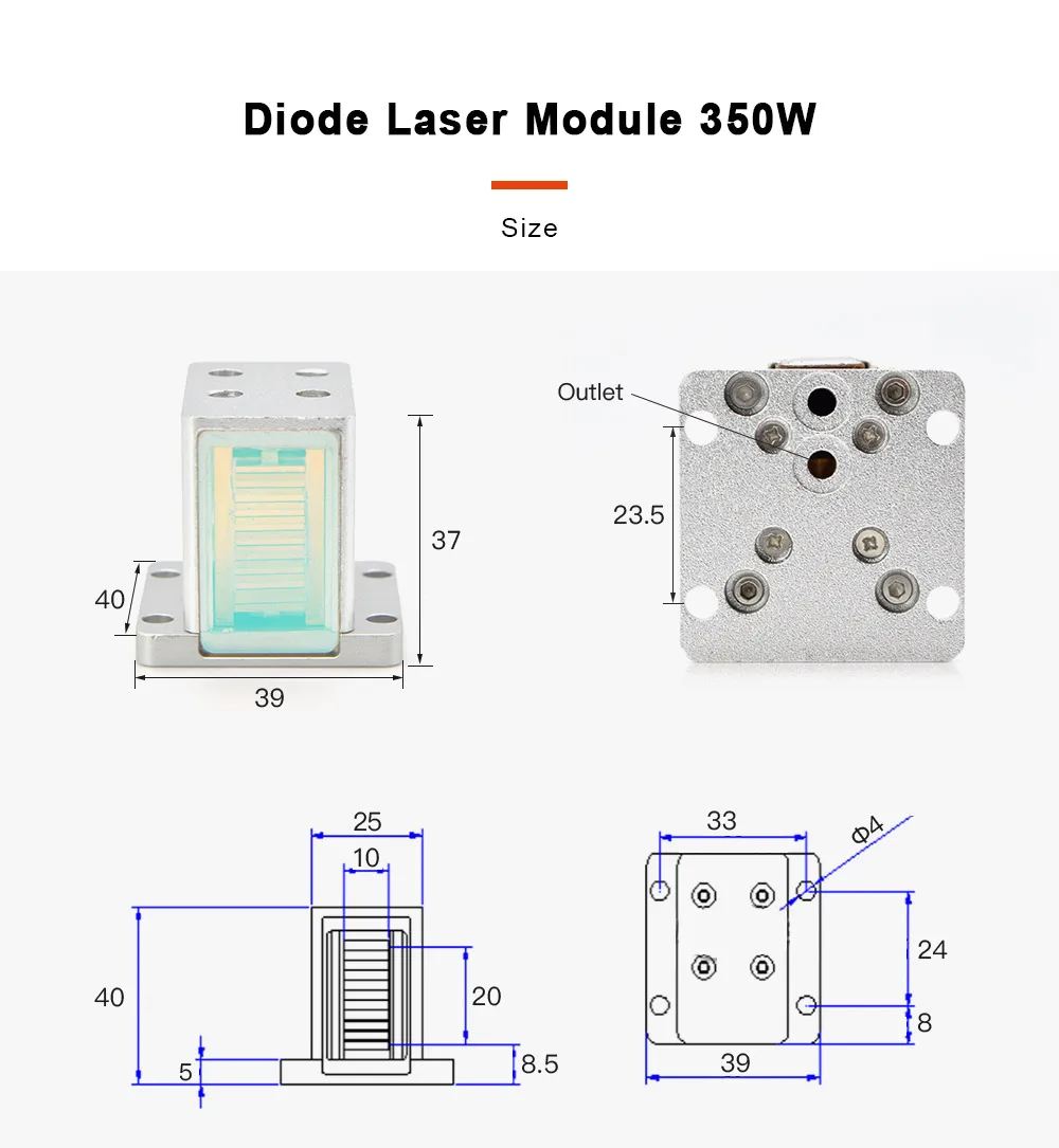 Диодный лазерный модуль состоит из диодного лазерного массива и диодного лазерного драйвера Диодный лазерный модуль с защитным окном Симметричный луч Простое водяное охлаждение и отсутствие высокого давления и воды высокого качества
