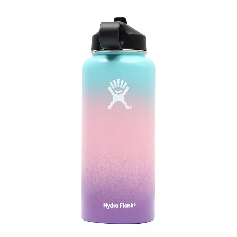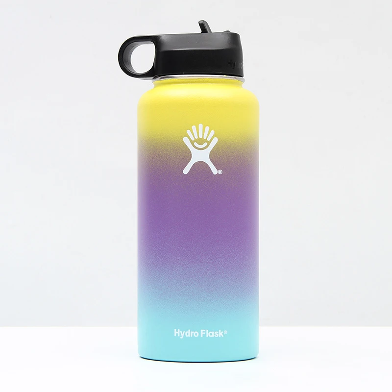 Термос из нержавеющей стали 18/32/40 унций, термос с вакуумной изоляцией, портативные уличные бутылки с широким горлом, градиентные цвета