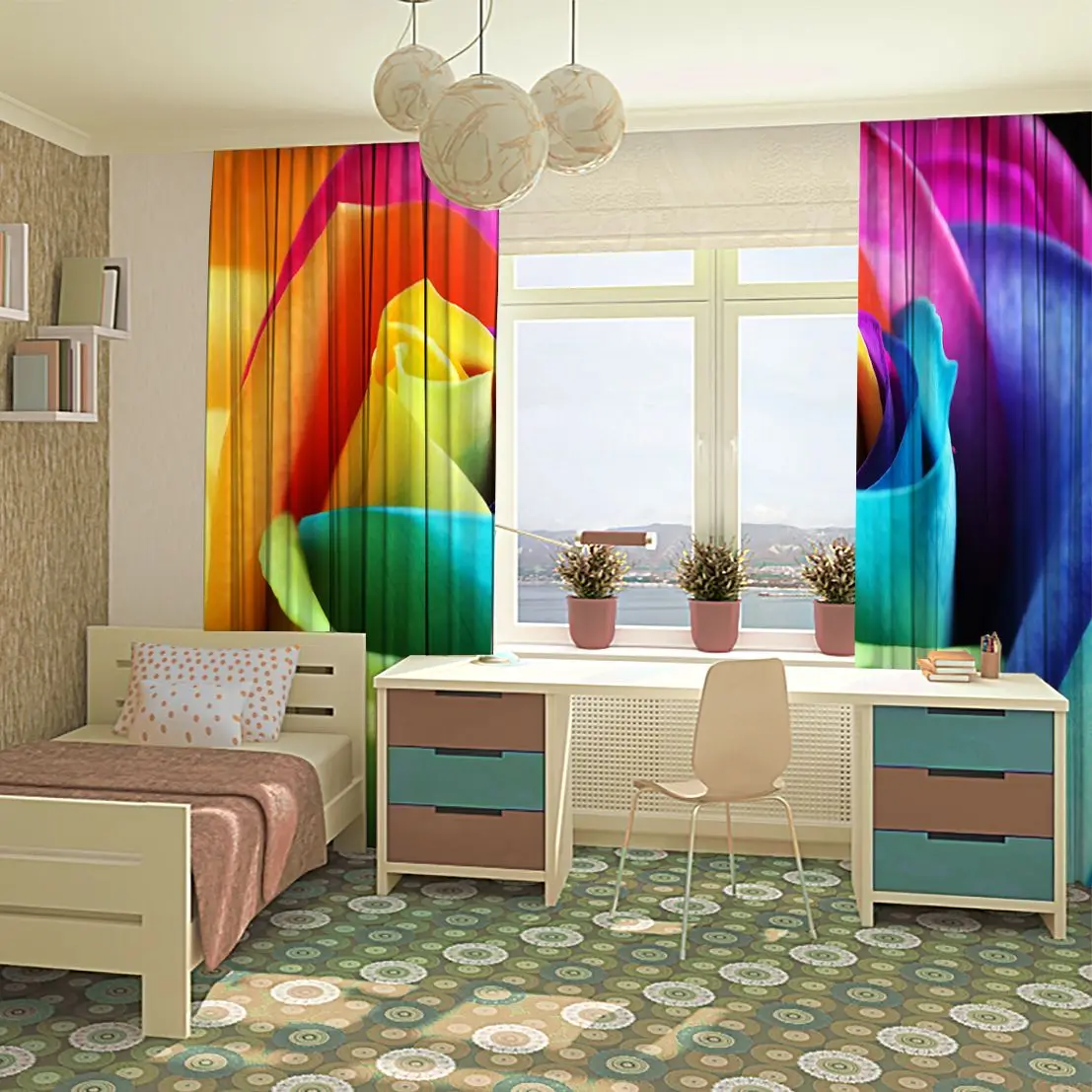 Панели можно повесить с помощью штор или крючков.