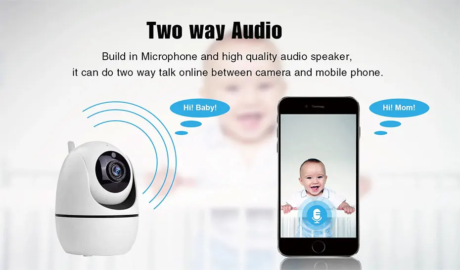 Крытый Камера Видеоняни и радионяни 1080P с функцией Wi-Fi Камеры Скрытого видеонаблюдения Камера с Ночное видение, 2-полосная аудио, обнаружение движения, светодиодный дисплей, обнаружения человека, автоматическое отслеживание