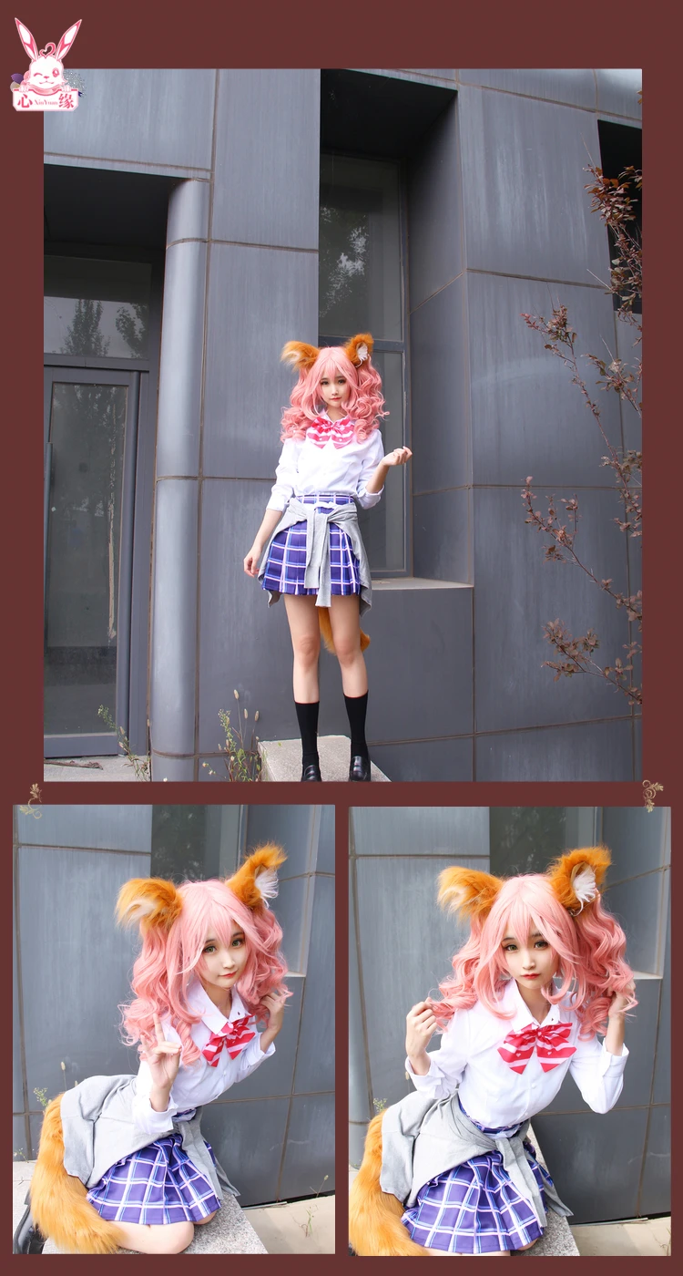 Tamamo no Mae cos Fate man woman аниме косплей костюм наборы рубашка + свитер + юбка + галстук