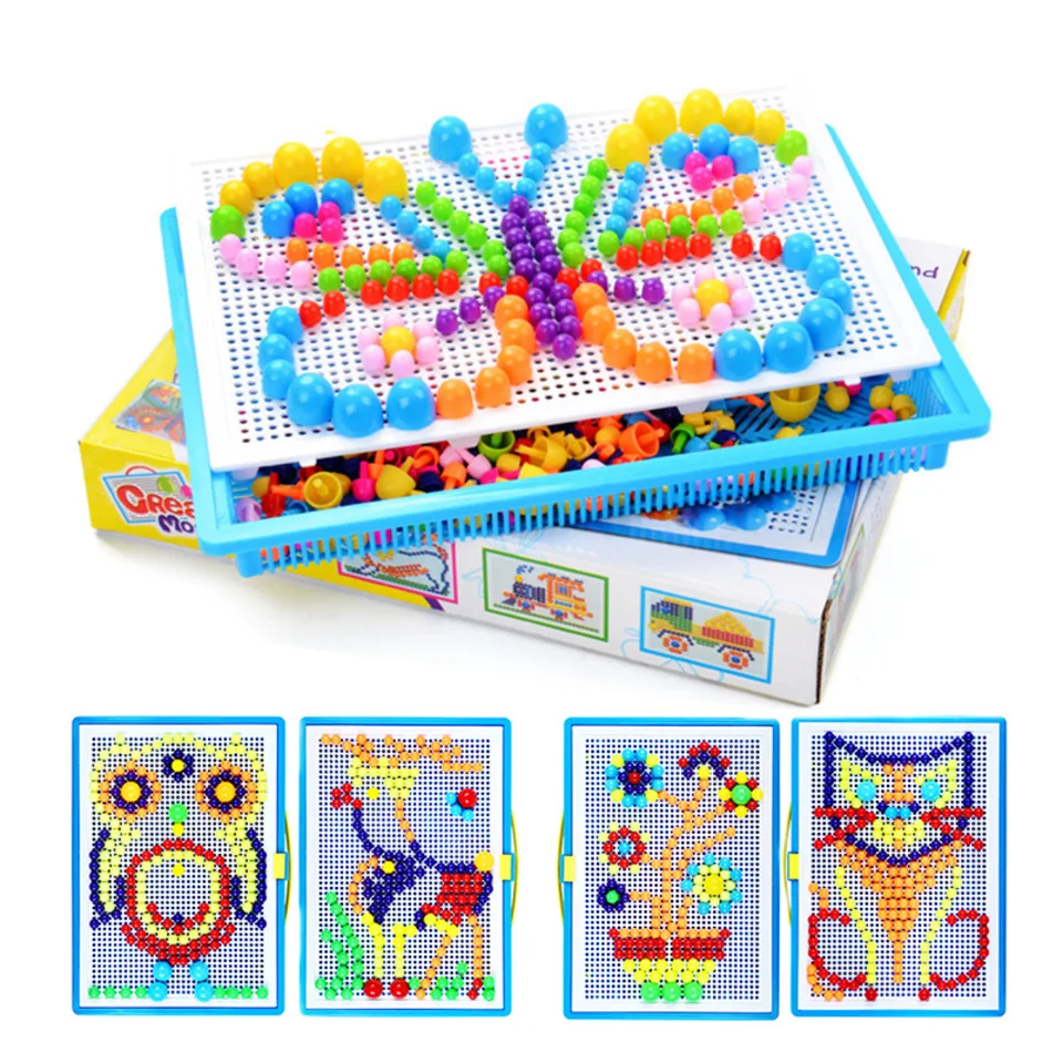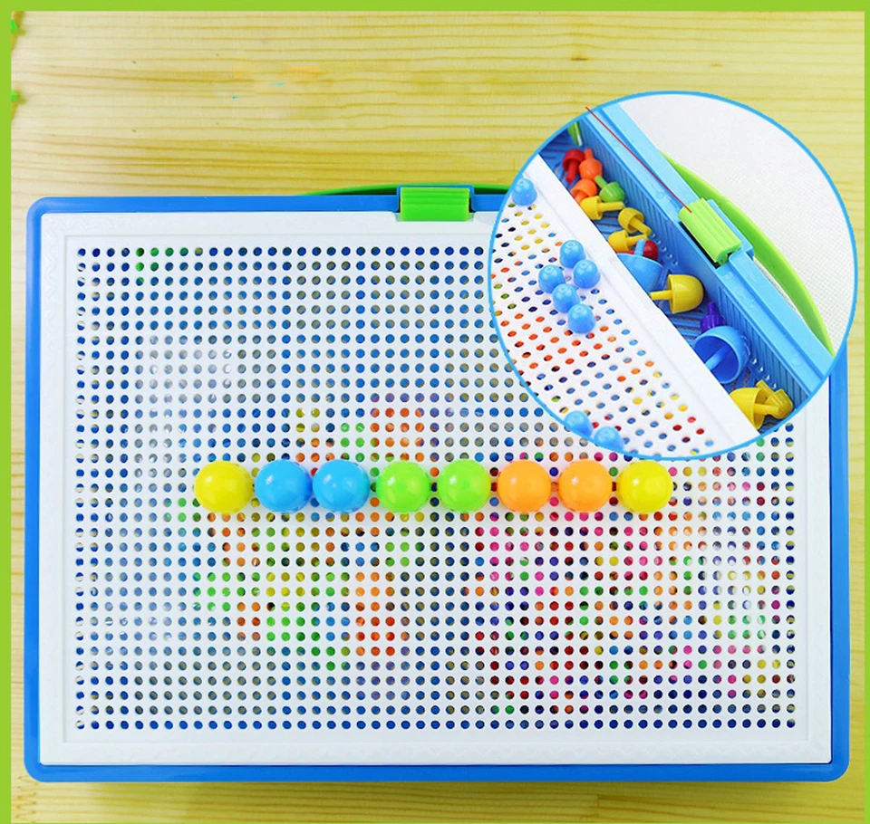 -Это обучающие игрушки с мозаичной доской, вставляя колышки в доску, дети свободно выражают свою креативность, и они тренируют координацию глаз и рук. Лучшие образовательные DIY подарки для ваших детей мальчиков и девочек