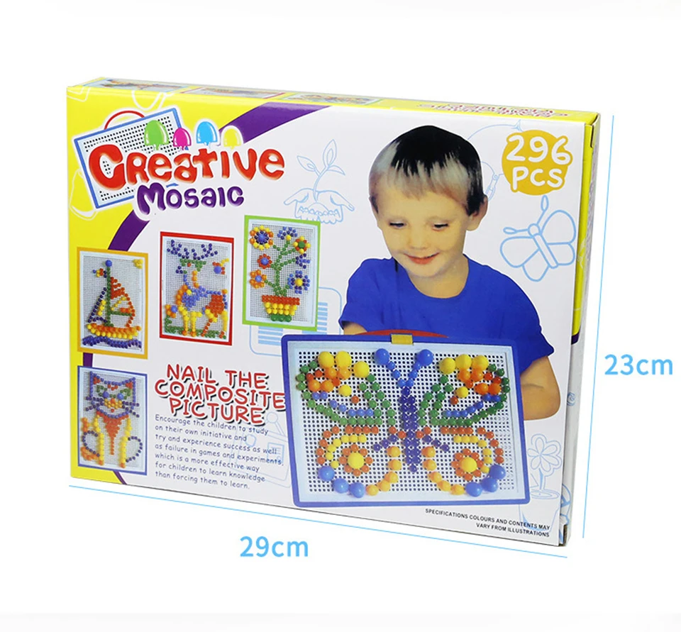 -Название продукта: 296 шт./компл. DIY Грибная гвоздь умная головоломка настольная игра Развивающие игрушки для детей Детские красочные кнопки строительные доски подарок