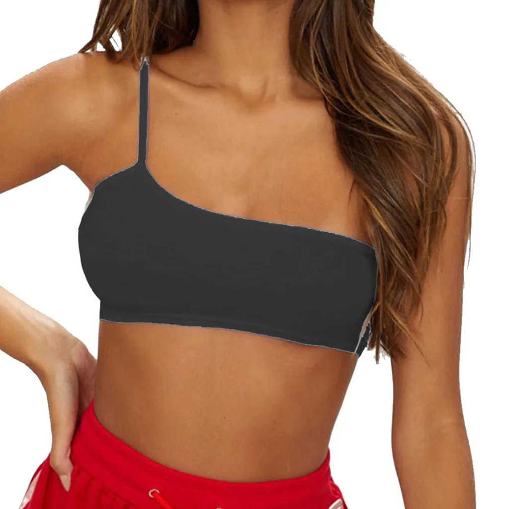 Женский однотонный топ с бретельками на одно плечо