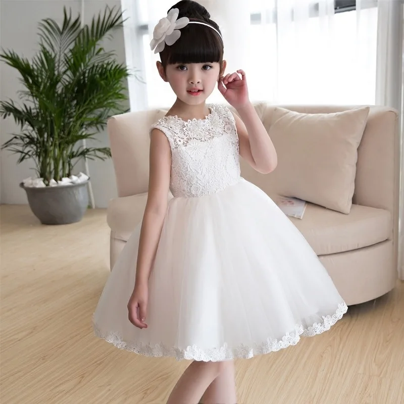 Милое белое летнее кружевное платье для маленьких девочек, 2020 год детское фатиновое платье принцессы без рукавов для дня рождения, вечерние платья с аппликацией на свадьбу, одежда для девочек