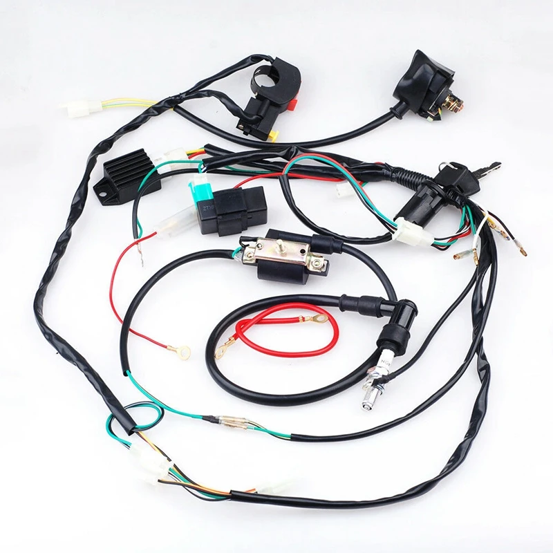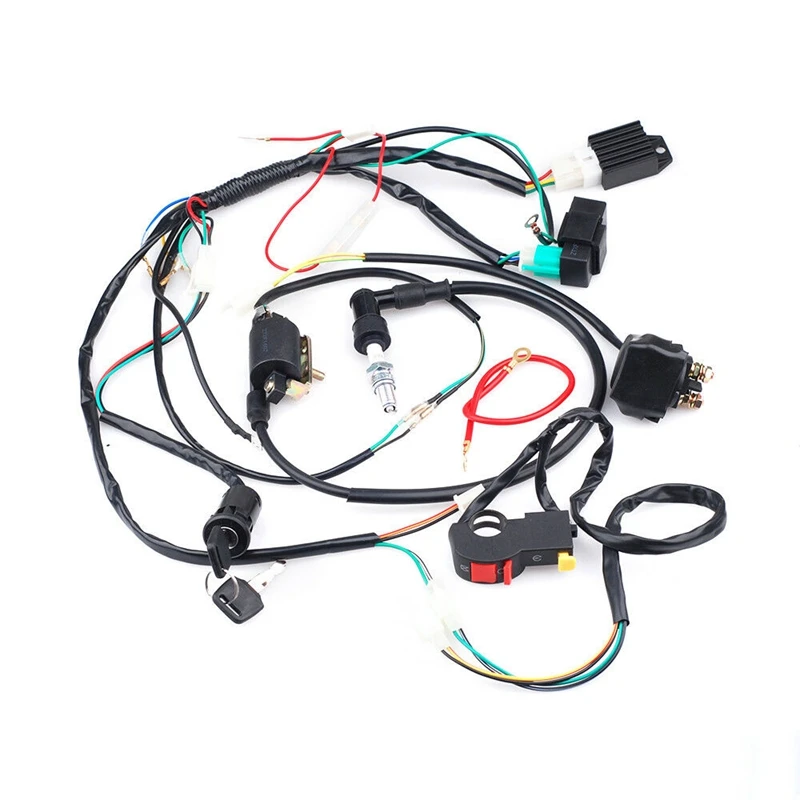 Complete Electric Start Engine Wiring Harness Loom for 50cc 110cc 125cc PIT Quad Dirt Bike ATV Dune Buggy