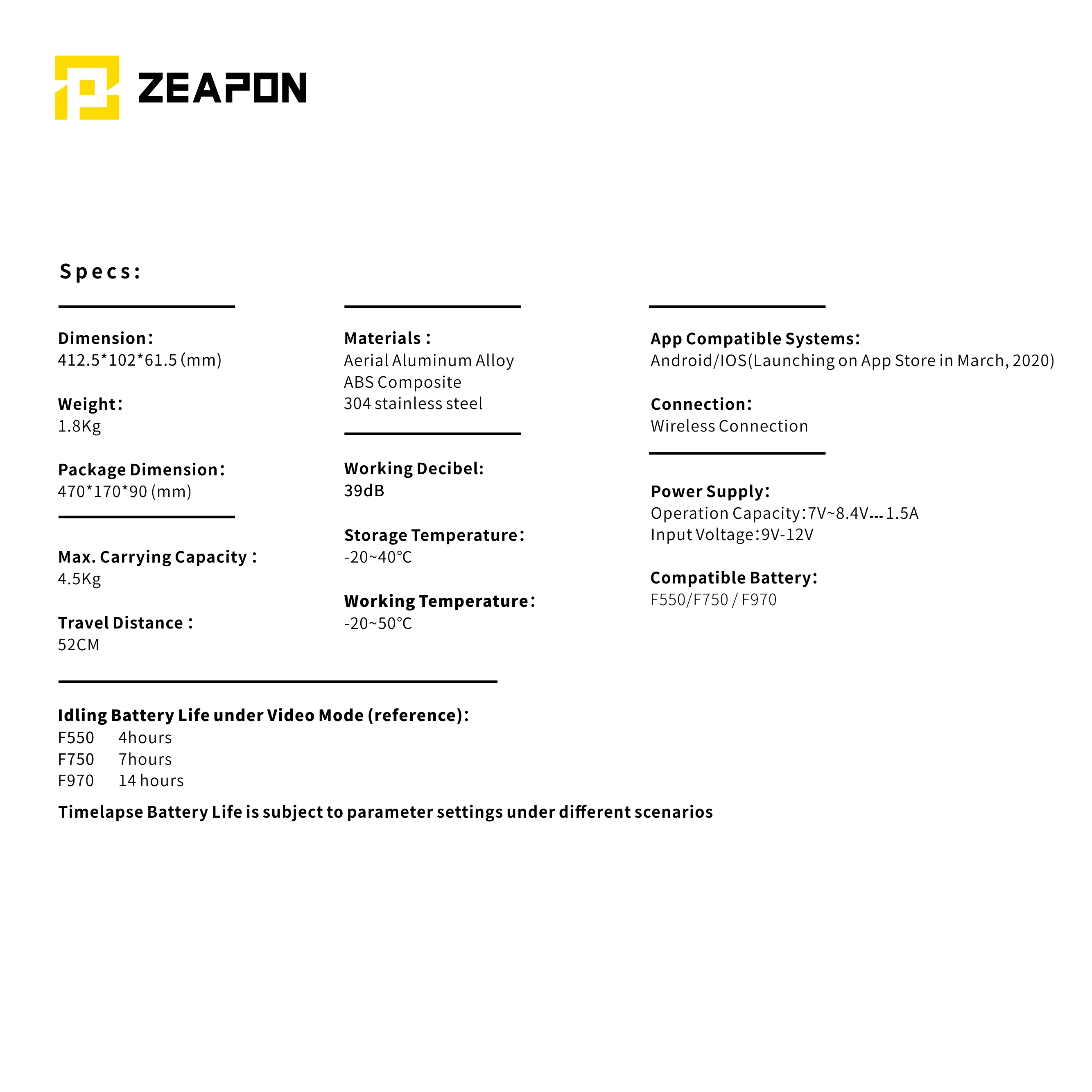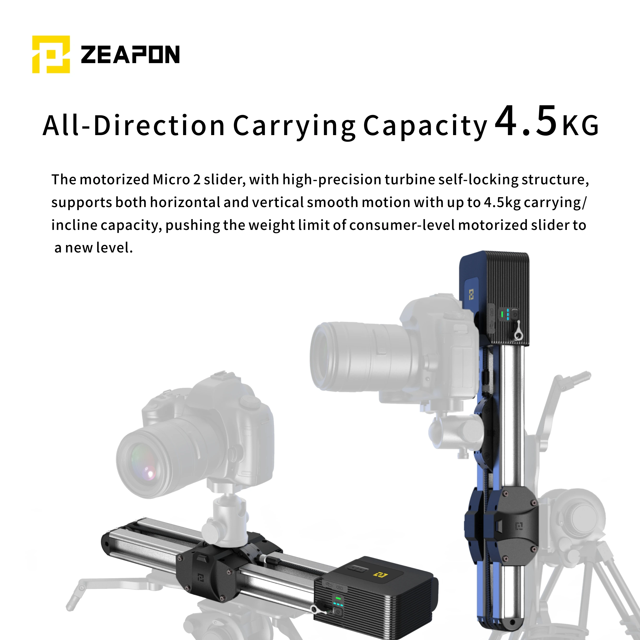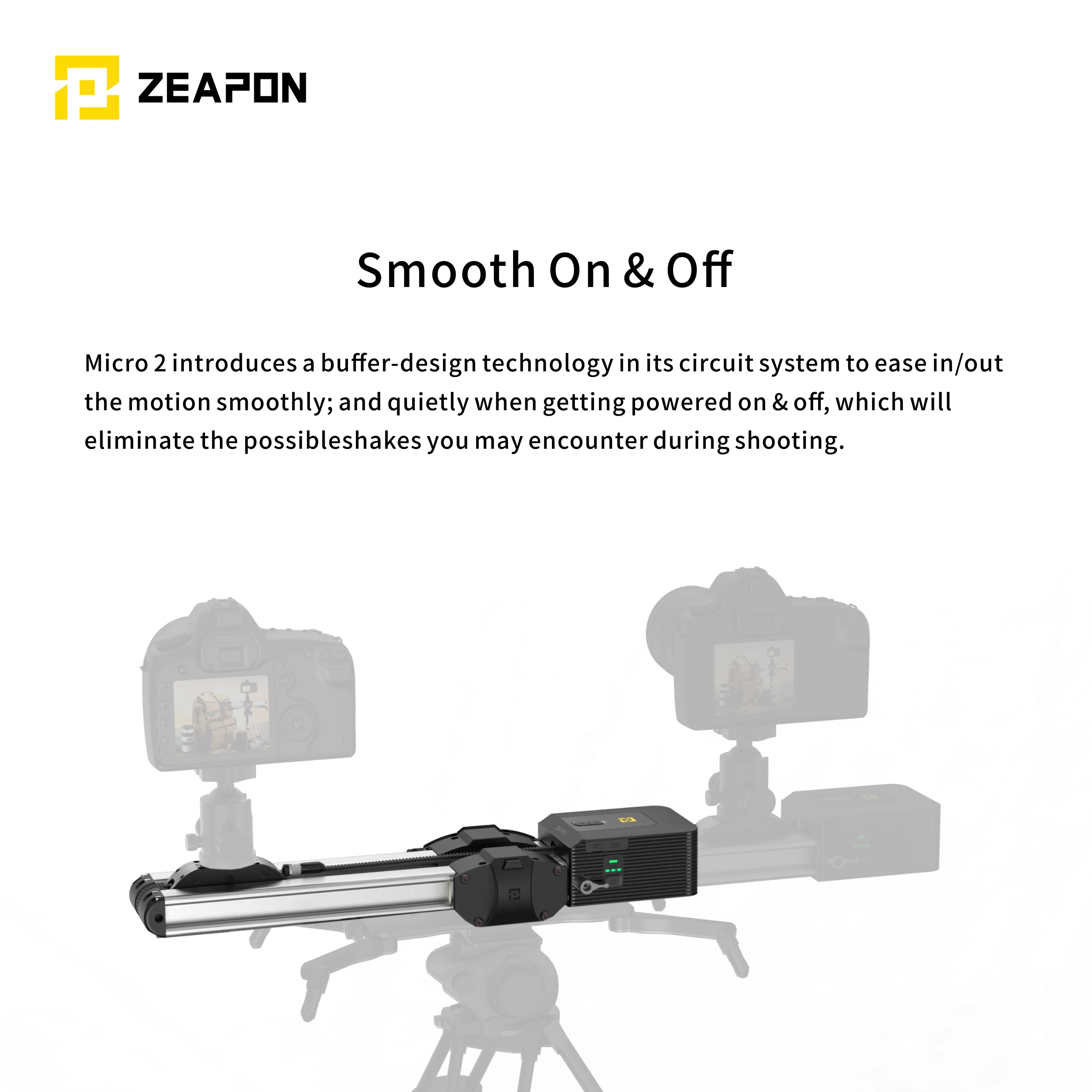 Моторизованный слайдер Micro 2 с двойным расстоянием-это идеальный инструмент для кинематографистов всех уровней. Он имеет ультра портативный размер и двойное расстояние путешествия, но предлагает замечательные возможности веса. Он может обрабатывать камера нагрузки до 9,9 фунтов (4,5 кг) в 90 ° по вертикали и может даже имитируют Tic стрелы снимки. Управляемый ультра бесшумным шаговым двигателем, вы можете получить точное позиционирование с минимальным шумом всего 39 децибелов. ZEAPON также ввел уникальный режим предварительного просмотра на основе приложений для timelapse для оптимизации редактирования. Моторизованный слайдер Micro 2 не только поможет вам получить шелковистые гладкие кадры, но также предоставляет различные интеллектуальные функции приложений, которые делают Программирование timelapse проще, чем когда-либо. С помощью специального приложения ZEAPON, ZEAPON LAB, пользователи могут напрямую выбирать заданные параметры, чтобы создавать красивые кадры timelapse, такие как sunrise или starlapse, или используйте калькулятор Timelapse, чтобы легко получить количество фотографий или продолжительность видео. Профессиональные кинематографисты могут установить индивидуальные Путевые точки для достижения желаемого пути движения. Для производственной команды, она вносит свой вклад в качестве универсальной кинематографической системы, которая делает многозадачность достижимой на одноручном операторе. Micro 2 позволяет вам фокусироваться на создании, заботясь о всех возможных трудностях, с которыми вы можете столкнуться с максимальной простотой.
