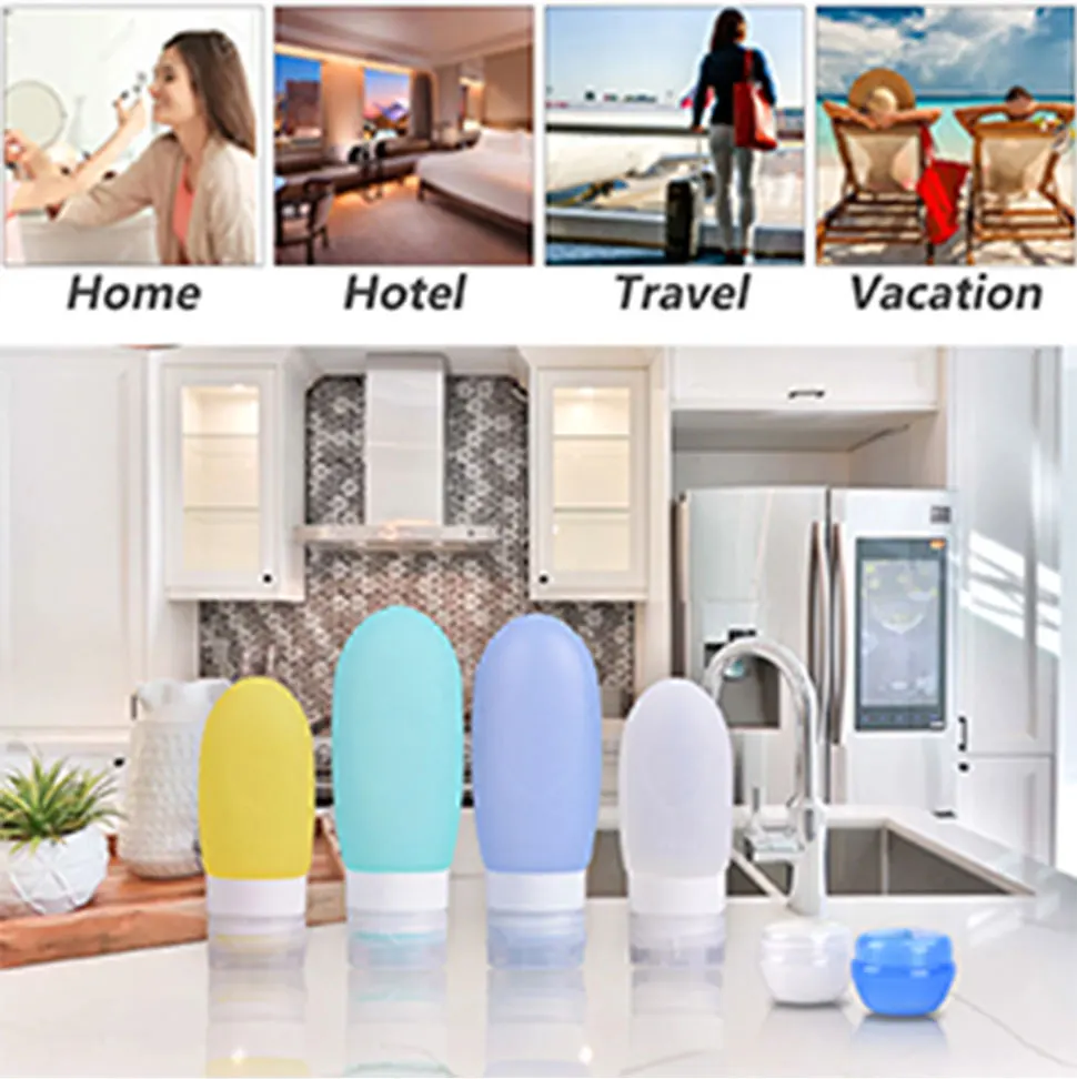 Портативный набор силиконовых дорожных флаконов, набор силиконовых флаконов, одобрено Tsa, герметичная силиконовая многоразовых дорожных косметических контейнеров
