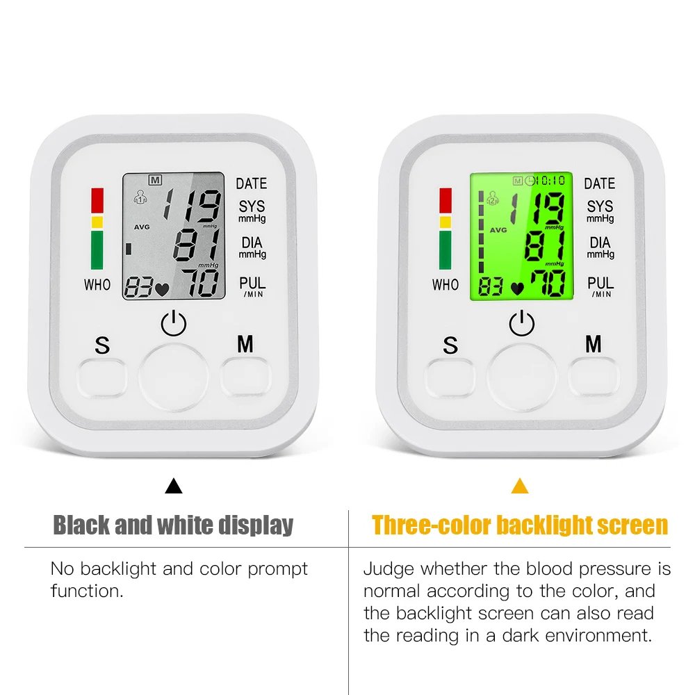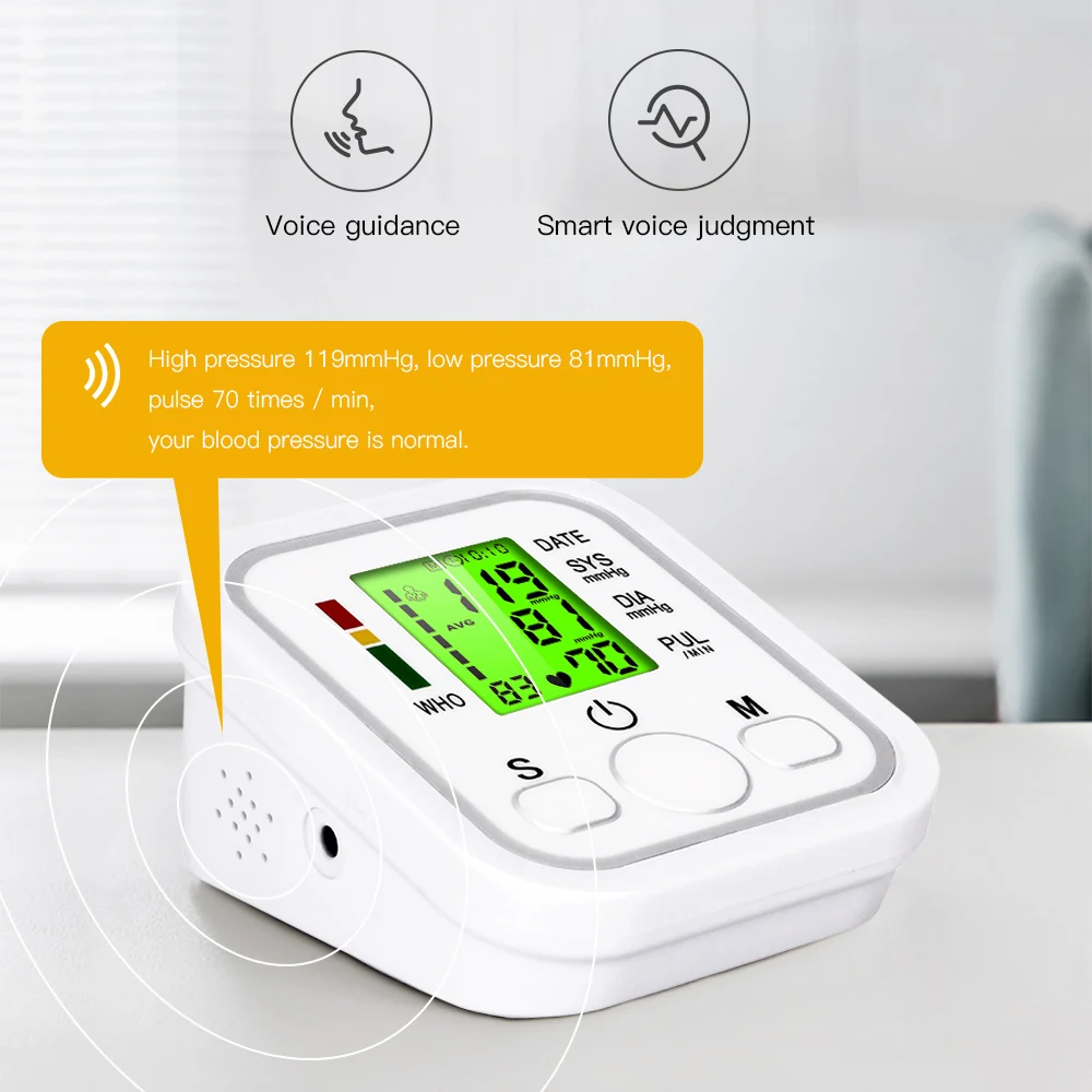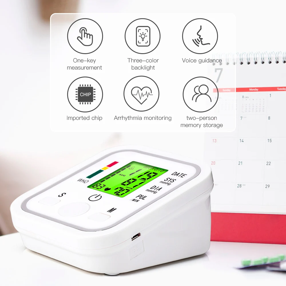 Параметры продукта: Бренд: OLIECO Цвет: белый Размеры: 3,74*2,36 * 4.53in Браслет: 22 ~ 32 мм Дисплей: жидкокристаллический дисплей Метод измерения: осциллометрический метод Источник питания: DC6V 4 AAA сухая батарея (не входит в комплект) и usb-кабель (входит в комплект) Диапазон измерения: (20-280) мм Hg / (2,7-3,7) кПа (крови измерения), (40-160) раз/мин (частота пульса) Точность: Артериальное давление ± 3% Частота пульса ± 5% Нормальная рабочая температура: 5 ℃ ~ 40 ℃ Влажность: 10% ~ 93% Рабочее давление: 85 кПа ~ 105 кПа Рабочее и запоминающее давление воздуха: 50 кПа ~ 105 кПа Устройство утечки воздуха: выпускной клапан Комплект хранения: 99 наборов хранения (2 человека) Метод быстрого выхлопа: Электрический выпускной клапан Утечка воздуха: выпускной клапан Результаты показывают: высокое давление/низкое давление/пульс Характеристика: ※ Домашний медицинский Автоматический монитор артериального давления прост в эксплуатации дома. ※LCD монитор ※ Английский голос, полное руководство, Интеллектуальное распознавание голоса. ※ Трехцветная подсветка экрана позволяет точно измерить кровяное давление. ※ Даже в темной среде экран с подсветкой может точно видеть результаты измерений. Measure Измерьте частоту сердечных сокращений, чтобы определить, является ли сердечный ритм нормальным. ※ Количество групп памяти: 2*99 данных памяти. Quickly Быстро измеряет систолическое кровяное давление, диастолическое кровяное давление и пульс. Intelligent интеллектуальная функция автоматического отключения, она может автоматически отключиться в течение 1 минуты без какой-либо операции. Accuracy точность: Артериальное давление ± 3% пульса ± 5%. Примечание: 1. Ваше кровяное давление будет зависеть от физических упражнений, тревожных упражнений и различных периодов дня. Вы должны сделать по крайней мере два измерения давления и получить среднюю точность измерения. Поэтому лучше измерять кровяное давление в одно и то же время каждый день, чтобы получить точные признаки изменений кровяного давления. Артериальное давление обычно измеряется относительно низким утром и постепенно увеличивается с дня до ночи. Кроме того, артериальное давление является относительно низким летом и относительно высоким зимой. 2. Пожалуйста, обратитесь к инструкции по эксплуатации. Руководство по эксплуатации для беззвучного кровяного давления делится со звуковым давлением. Если вы покупаете кровяное давление без звука, пожалуйста, игнорируйте настройки звука в руководстве. Включает: Сумка для хранения * 1 Машина * 1 Ремешок на манжете * 1 (22-32 см) Руководство на английском языке * 1 Цветная коробка * 1