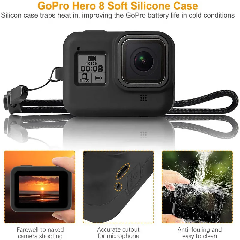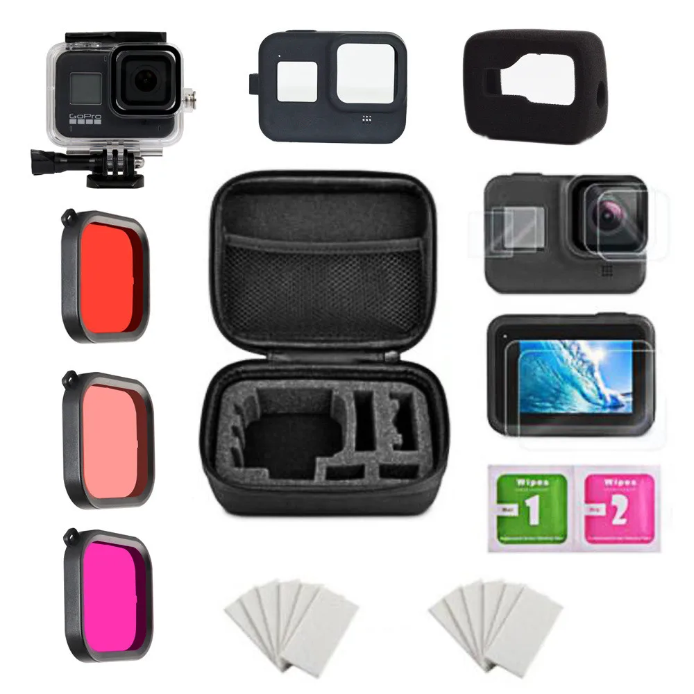 Accessory Kit for Gopro Hero 8 Black Waterproof Housing Case Tempered Glass Screen Protector Filter Anti-fog Sheet Kit