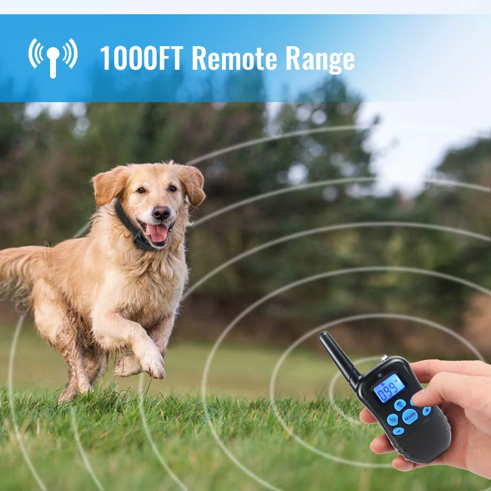 Диапазон беспроводного управления до 1000 футов, легко приручить вашу собаку в парке или на заднем дворе, не волнуйтесь, что она проходит слишком далеко.