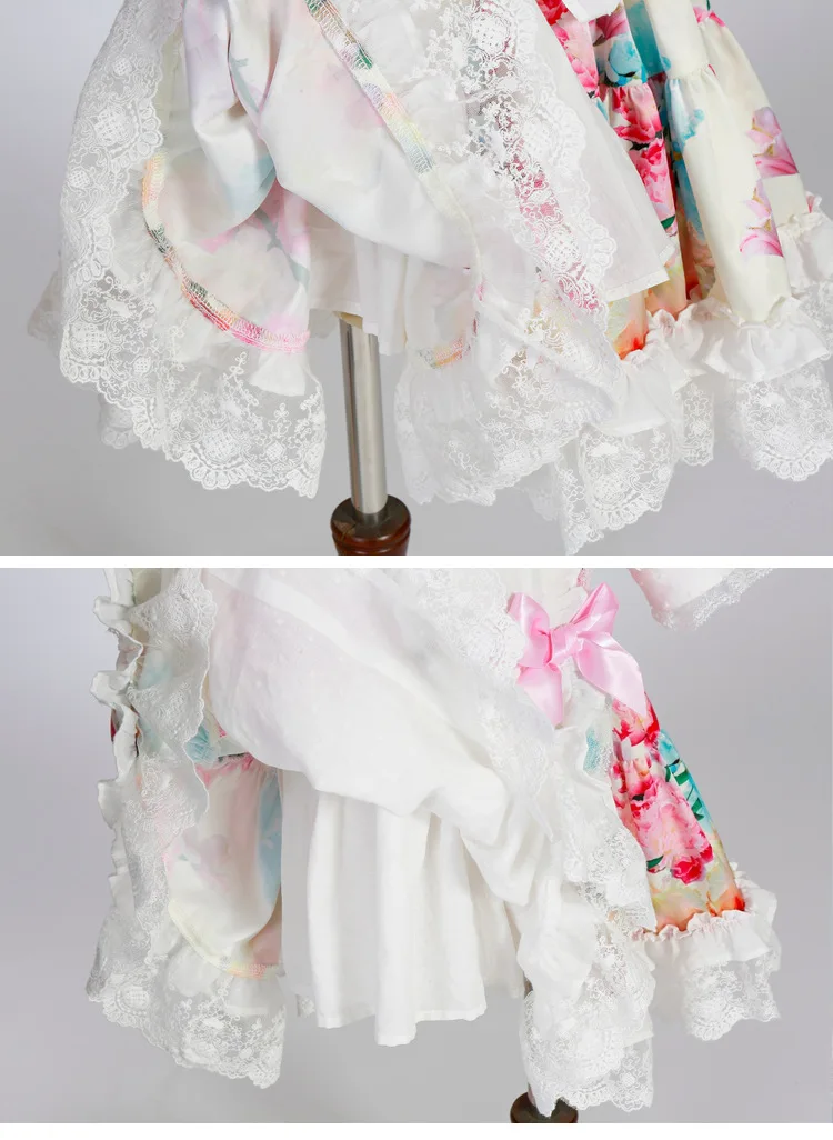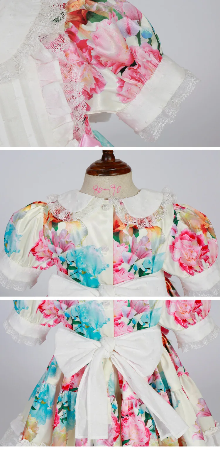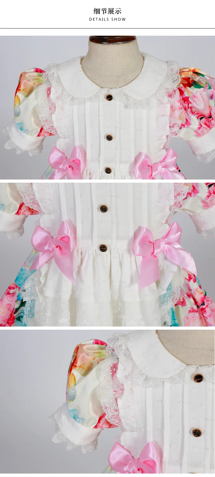 Эксклюзивное летнее платье принцессы с цветочным узором для девочек; Винтажные платья Лолиты с испанским кружевом и бантом для девочек; Платья для дня рождения и вечеринки для малышей