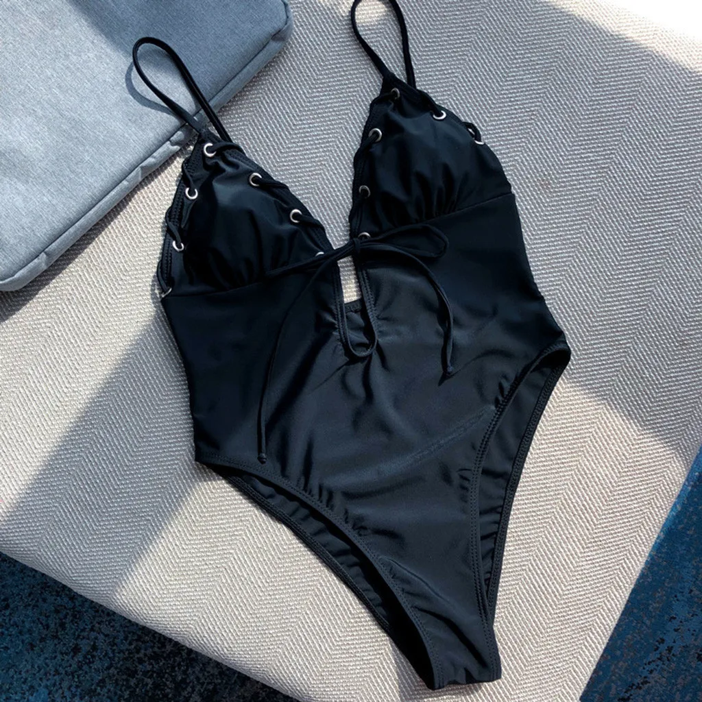 Женский сексуальный сплошной v-образный Вырез Холтер цельный бикини пляжный купальник купальный костюм
