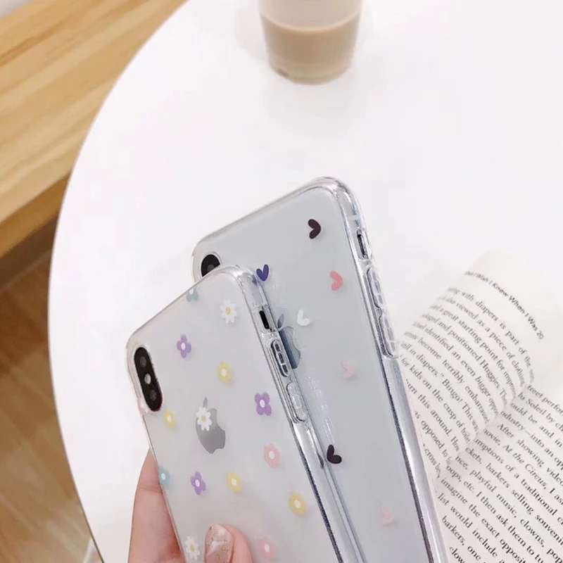 Прозрачная силиконовая задняя крышка с цветами и сердечками для Apple iphone 11 Pro XS Max X XR 6 6S 7 8 Plus, мягкие прозрачные чехлы для телефонов
