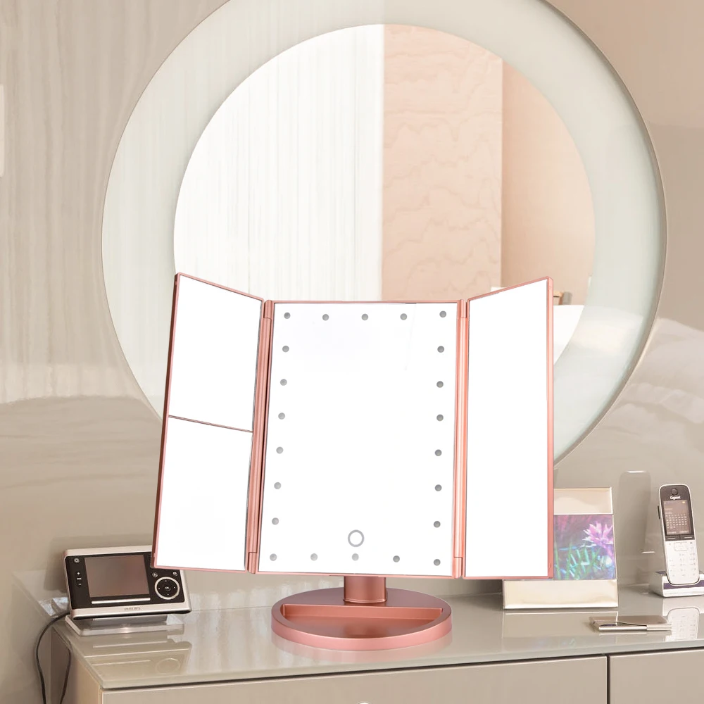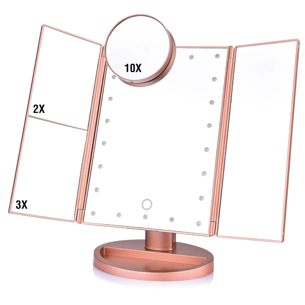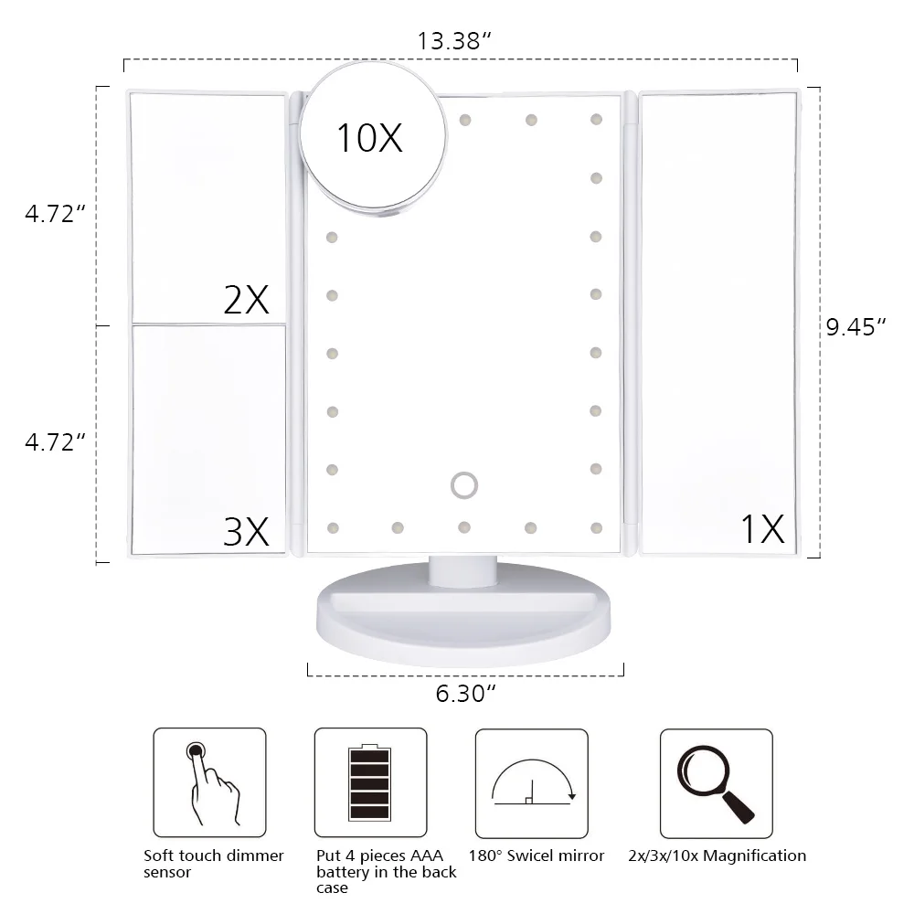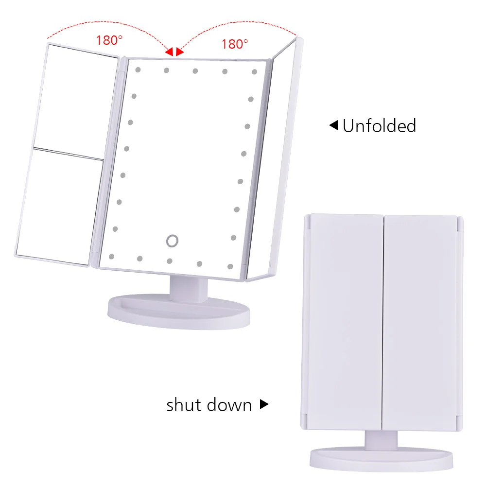 LED Touch Screen 22 Light Makeup Mirror Table Desktop Makeup 1X/2X/3X/10X Magnifying Mirrors Vanity 3 Folding Adjustable Mirror