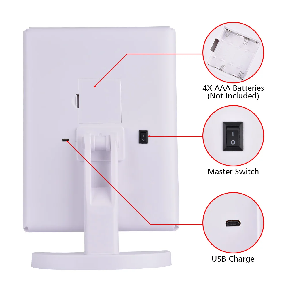 No cords: Two-way powered, 4*AAA batteries(NOT INCLUDED) or operated by external Mirco USB port, you can use Power Bank, USB Wall Charger, PC Desktop or Laptop to light it,a backup power-way when batteries run out.