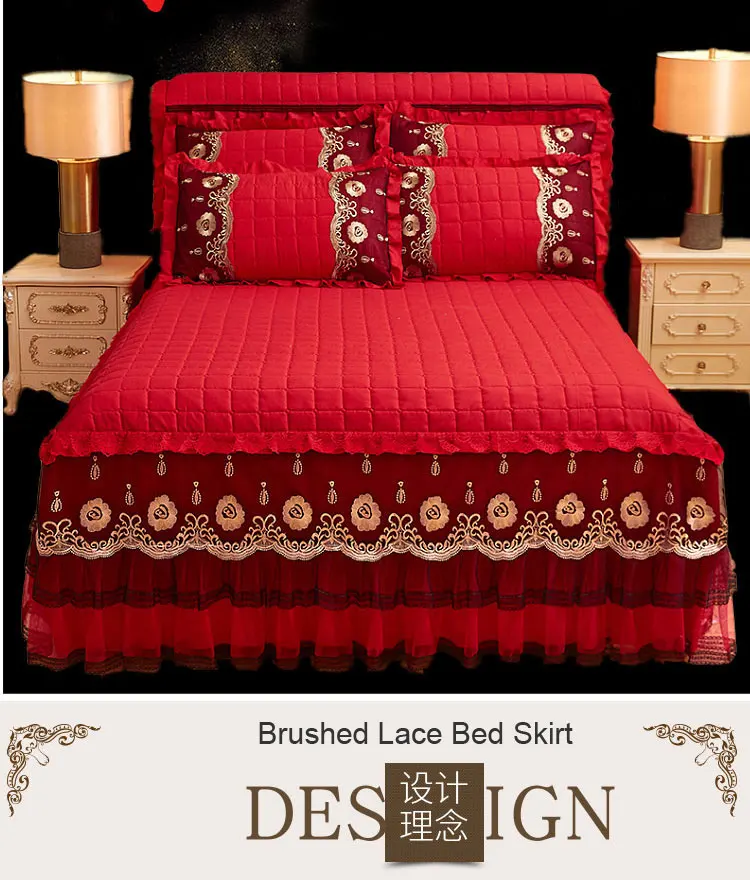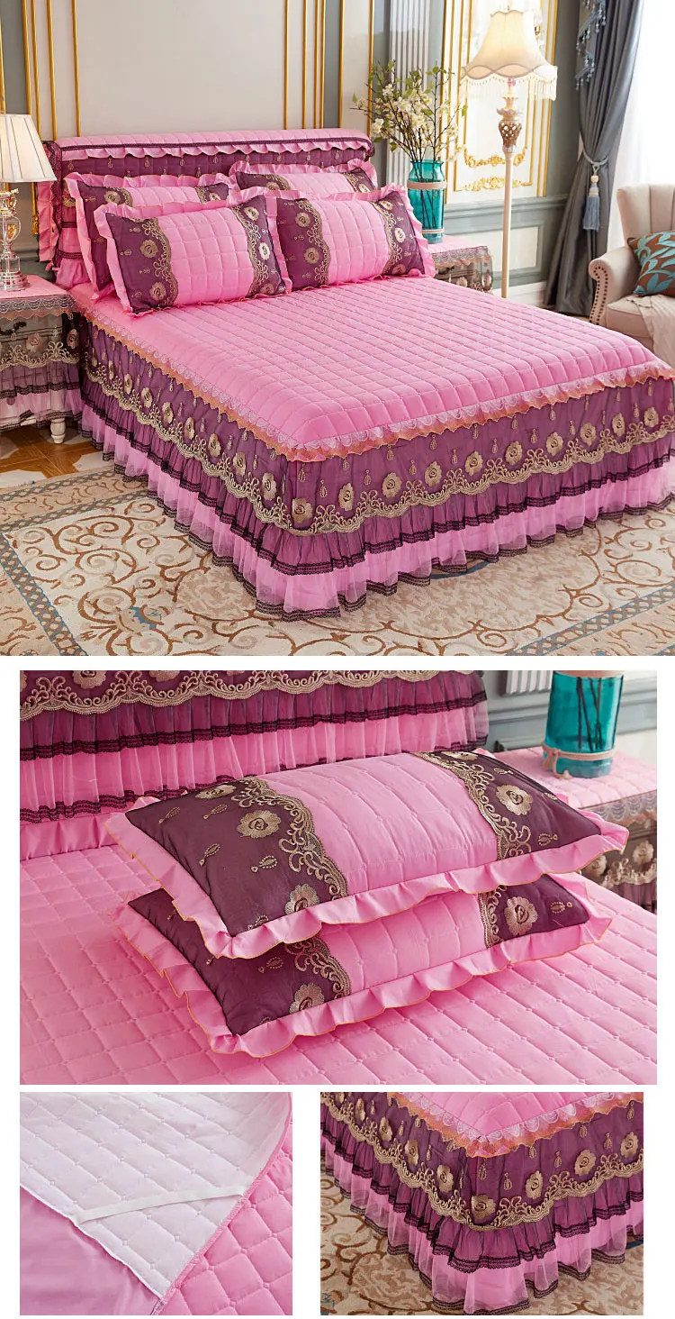 (1) Название продукта: Европейское стеганое покрывало из 3 предметов, простыня на резинке, кружево с подушками.