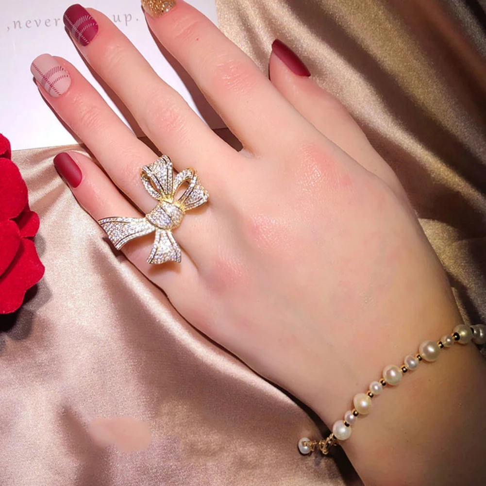 Модная женская кубическая циркониевая инкрустация, кольцо на палец с бантом для свадебной вечеринки, подарок