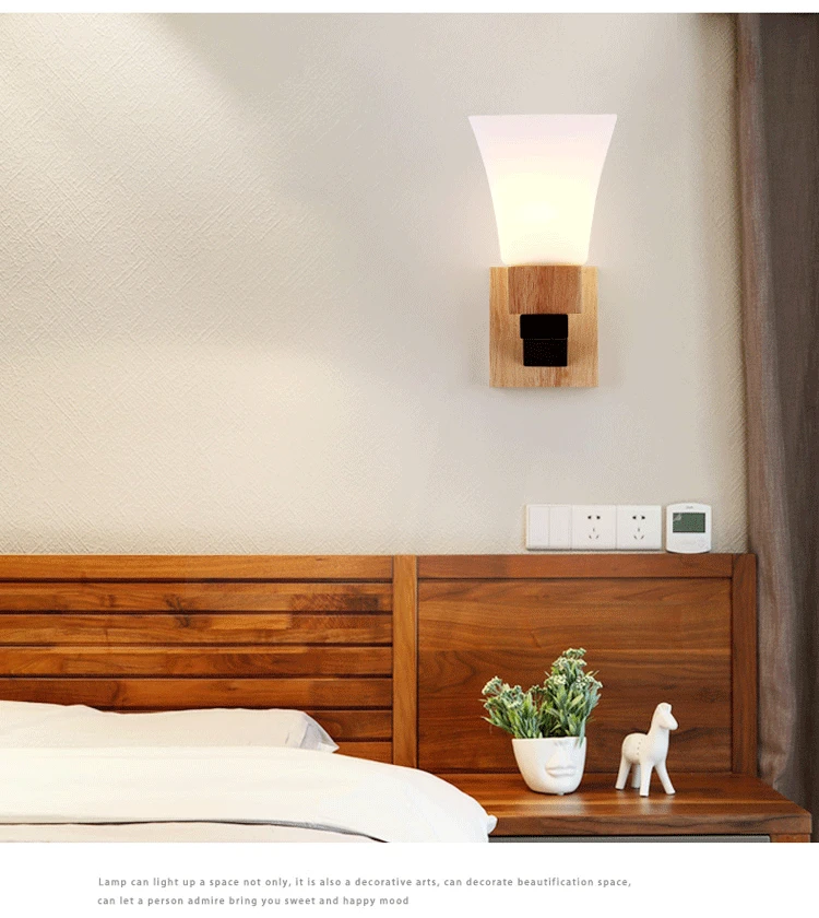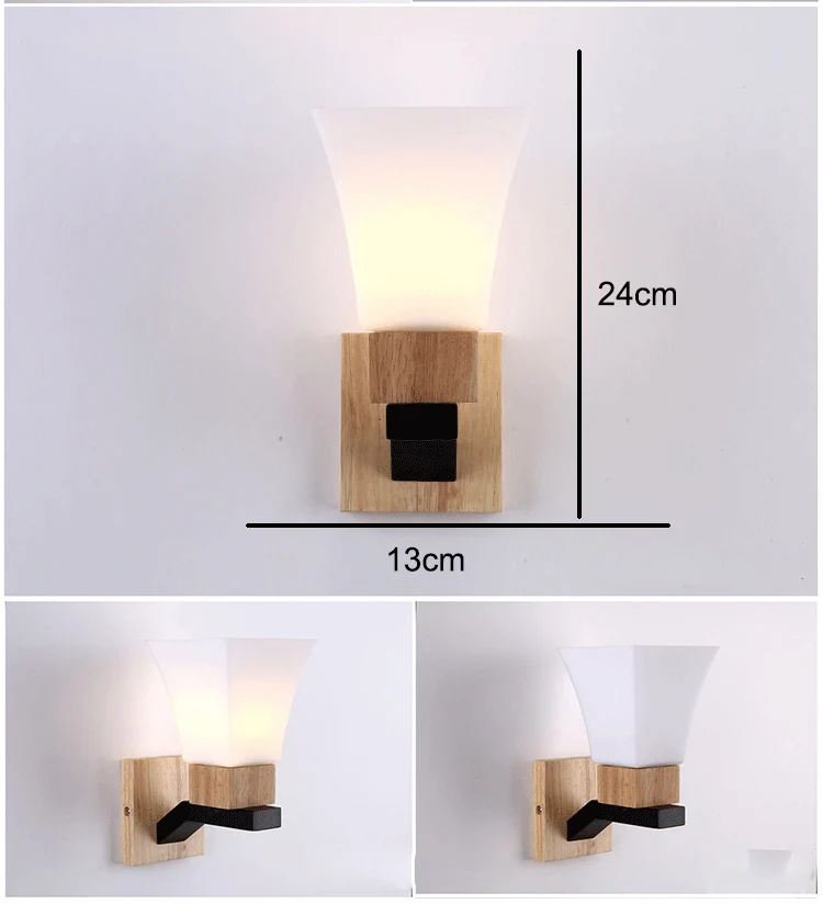 Декоративное Скандинавское бра, настенные светильники со стеклянным абажуром, креативная домашняя прикроватная светодиодная настенная лампа, деревянные ночные светильники, светильники E27