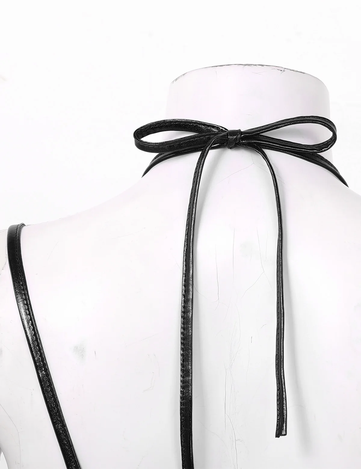 Бюстгальтер с лямками на шее и с открытой спиной, завязывается сзади, подтяжки с регулируемыми бретельками, стринги, нижнее белье.
