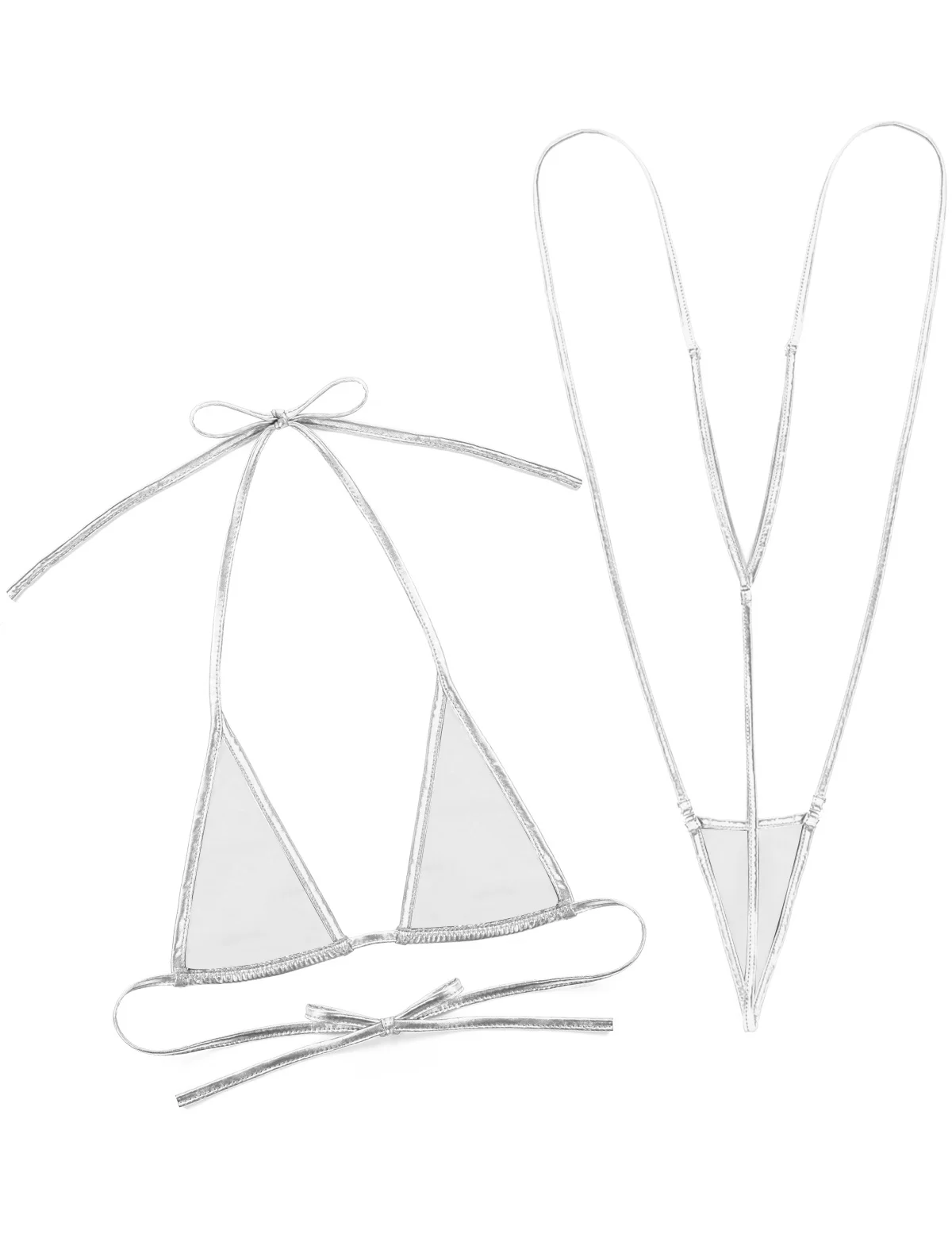 Женское Эротическое блестящее металлическое мини-нижнее белье мини-бикини, один размер подходит для большинства.