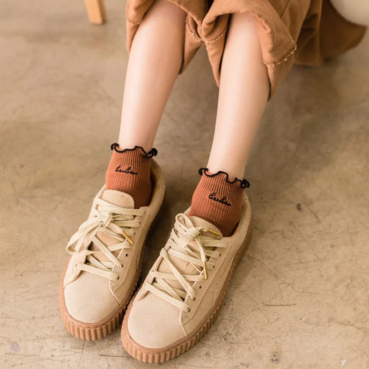 High Quality Cute Elegant Lovely Kawaii Embroidery Sweet Harajuku Cotton Women Socks Anima Character Casual Short Socks Hot